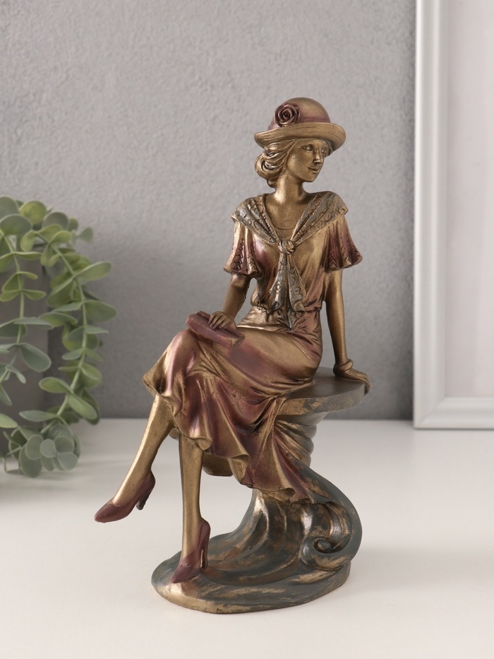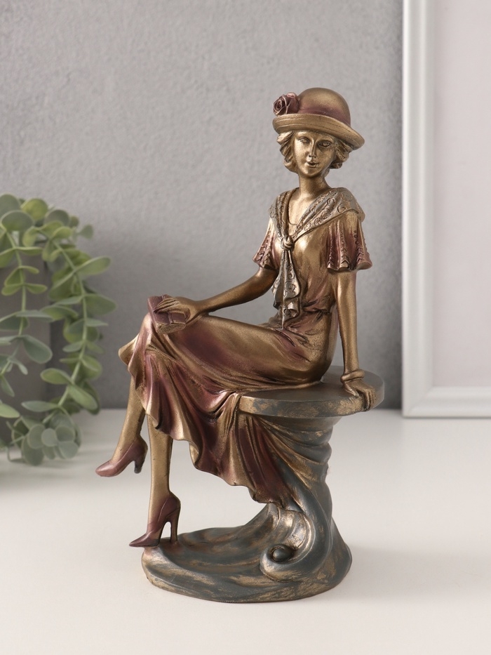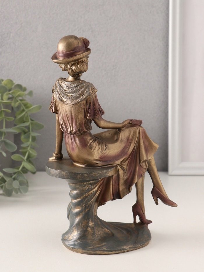 Сувенир полистоун "Леди в шляпке-котелке с цветком" бронзо-фиолетовый 13х8х21,5 см
