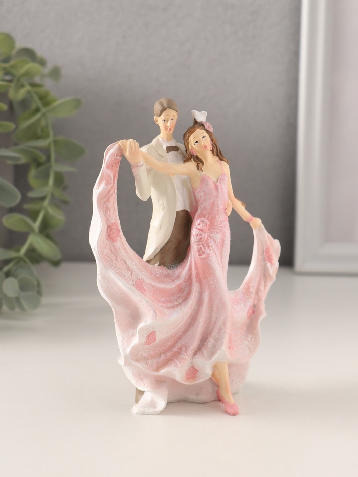Сувенир полистоун "Танцующая пара" бело-розовый 9,5х5х13 см