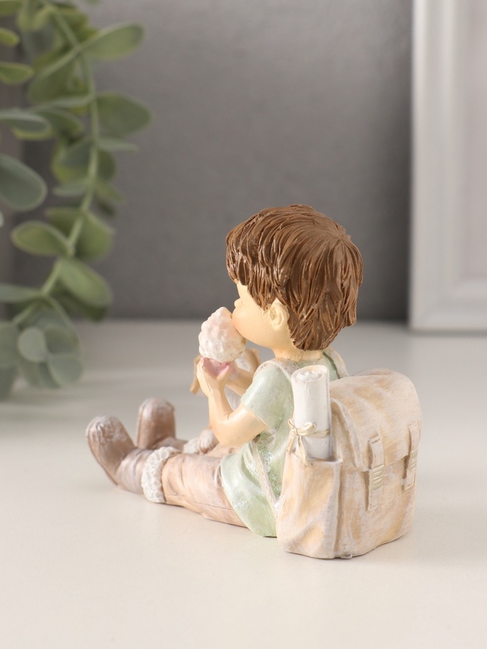Сувенир полистоун "Мальчишка с рюкзаком и щенком, ест мороженое" 9,5х5х8,5 см