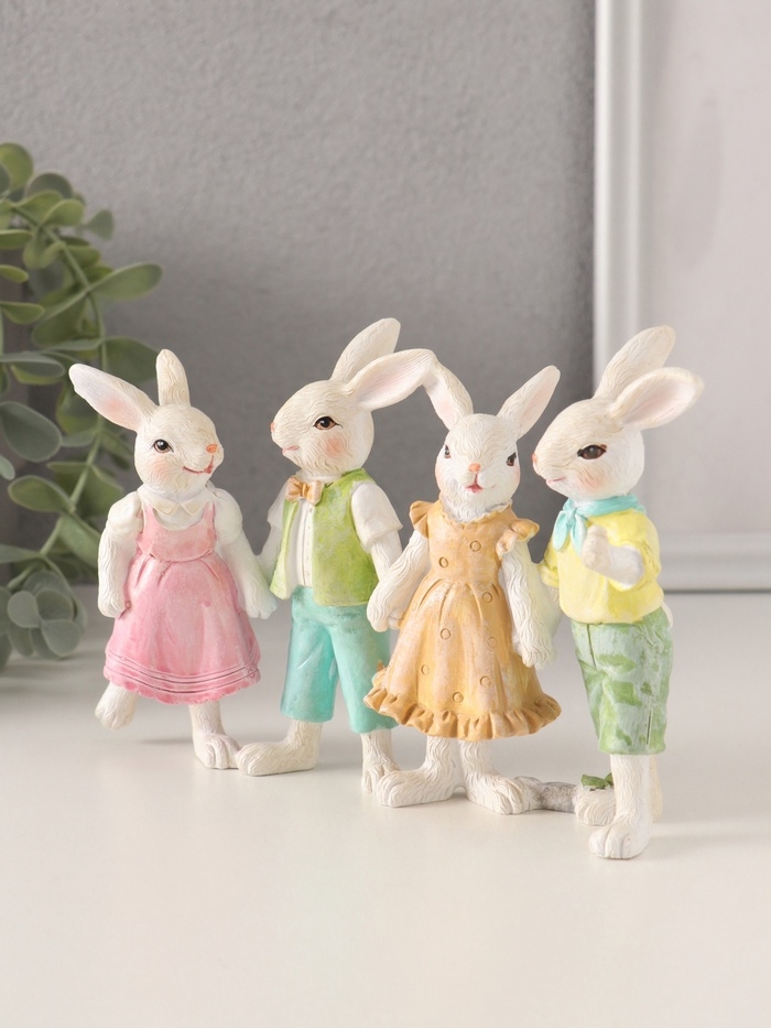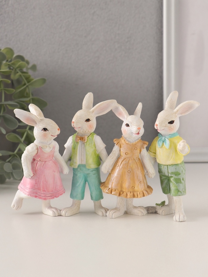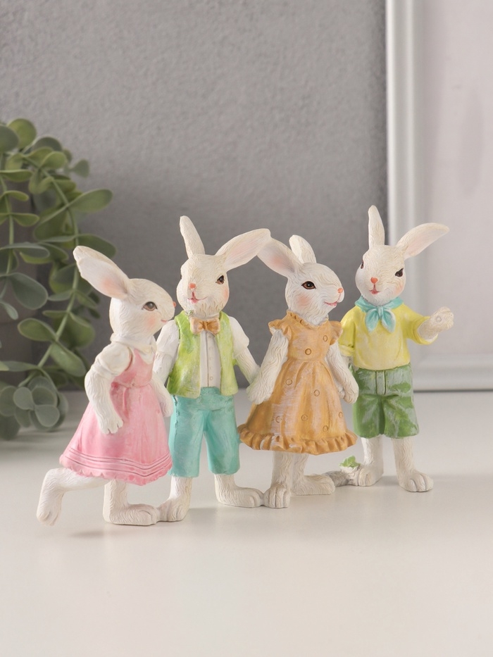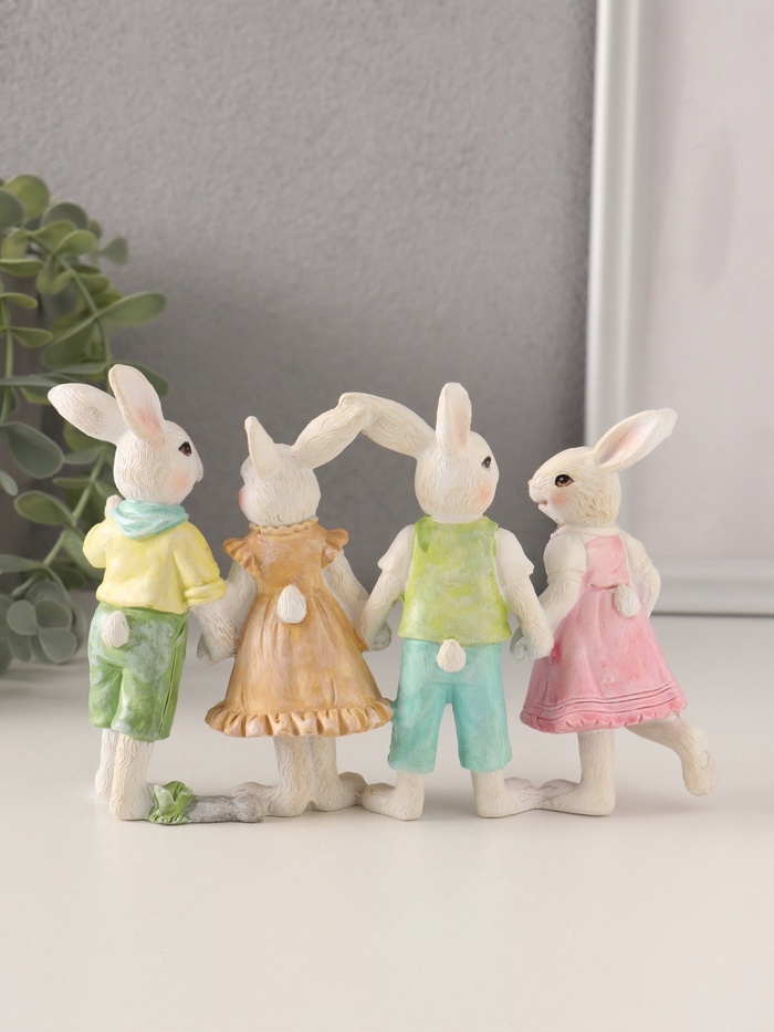 Сувенир полистоун "Нарядные кролики - праздничный хоровод" 16,5х6,5х11 см