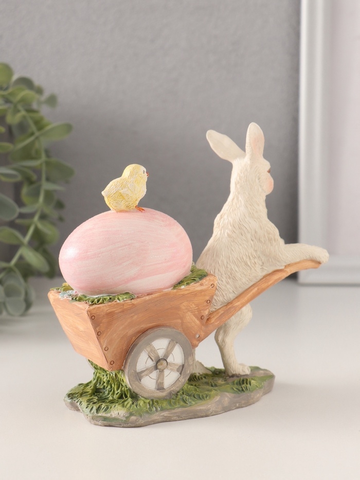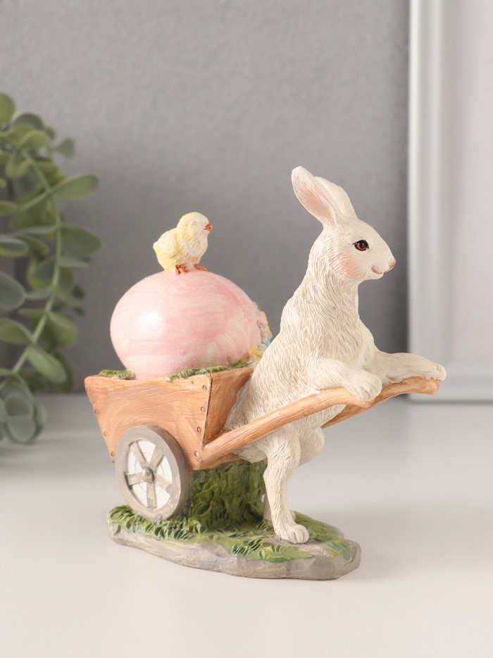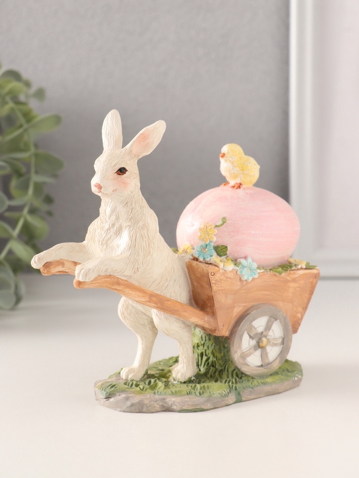 Сувенир полистоун "Кролик везёт тележку с цыплёнком и пасхальным яйцом" 13,5х6х13 см
