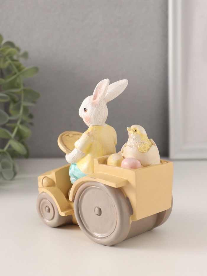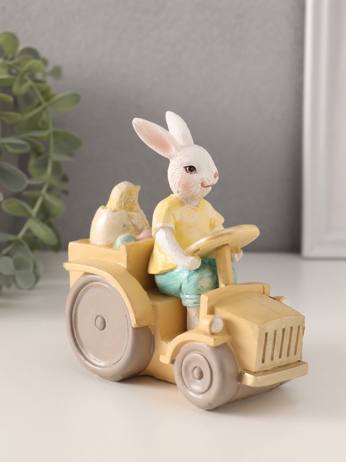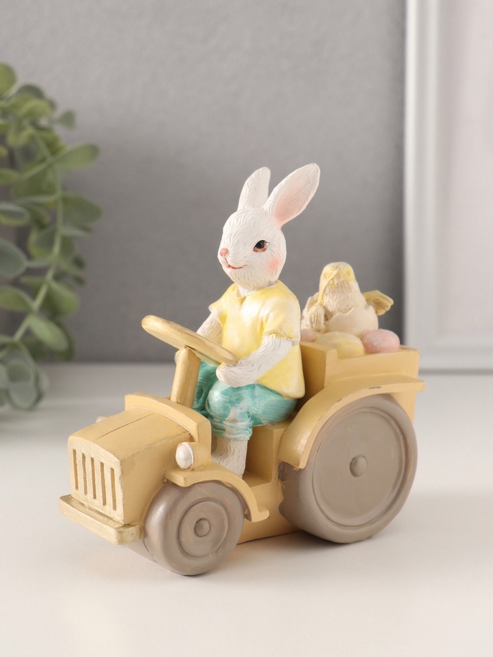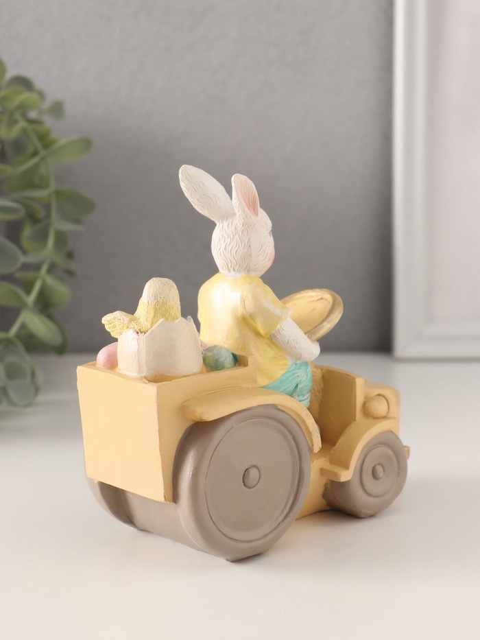 Сувенир полистоун "Заяц-тракторист с цыплёнком и яичками в кузове" 13х7,5х12 см