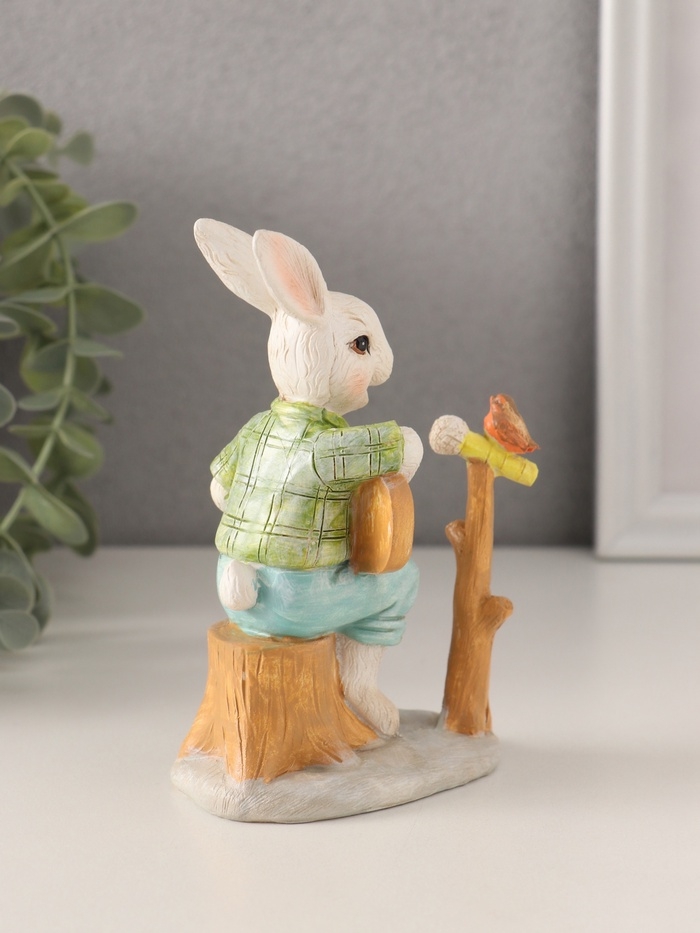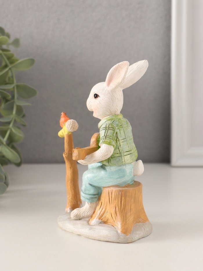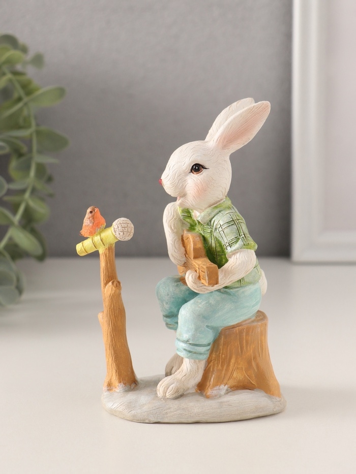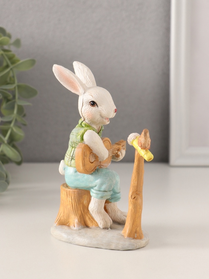 Сувенир полистоун "Зайчик играет на гитаре для птички" 8,5х6,5х12 см