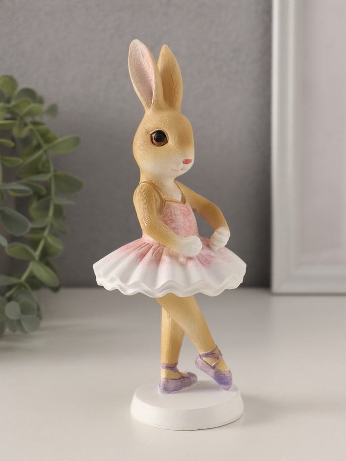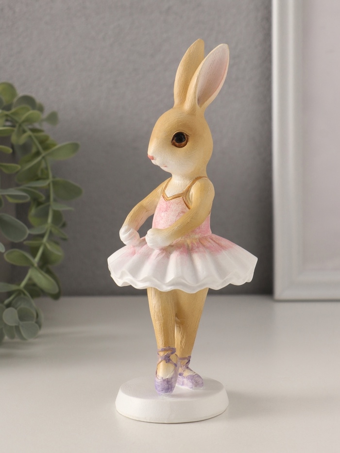 Сувенир полистоун "Зайка-балерина в бело-розовой пачке" 7х7х18 см