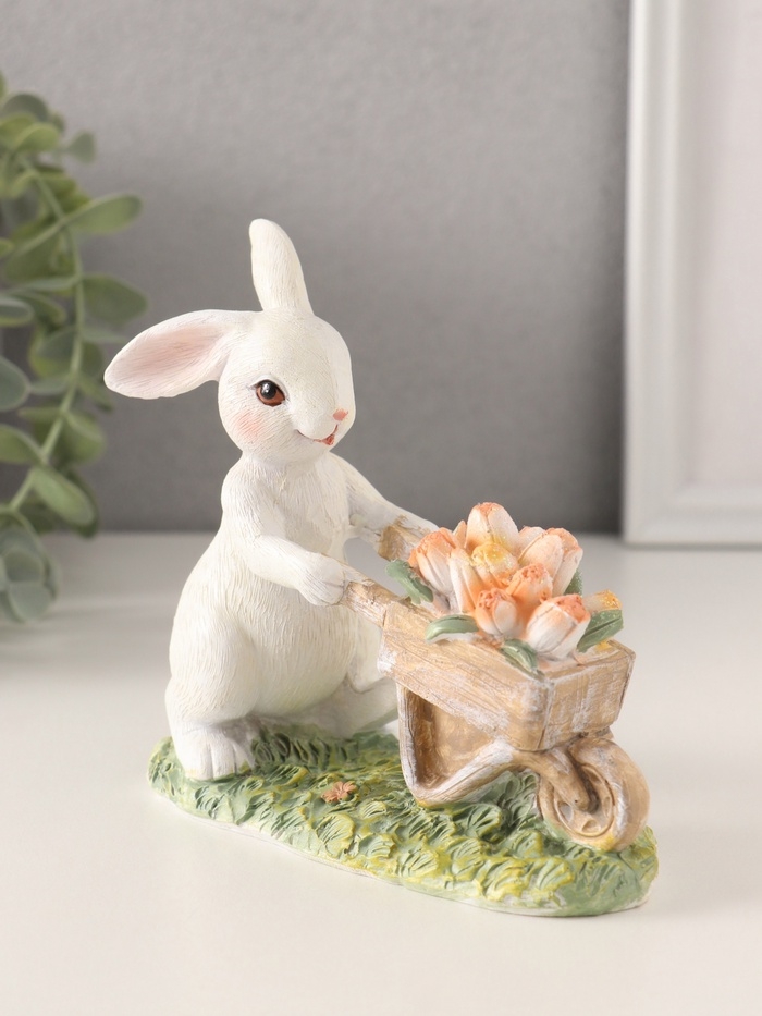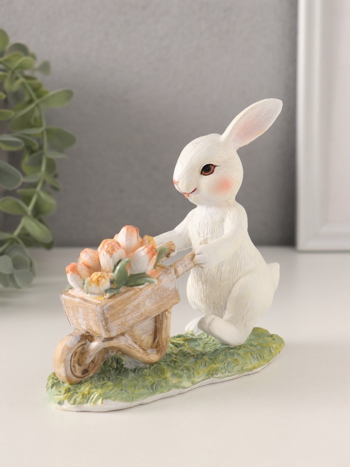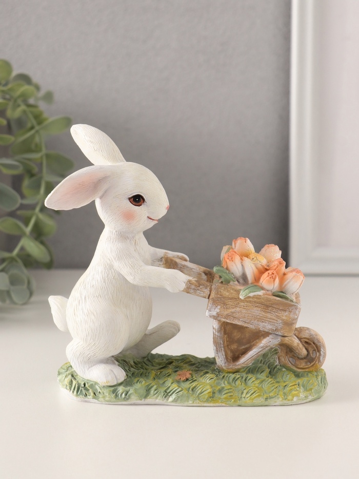 Сувенир полистоун "Кролик везет тележку с тюльпанами" 13,5х6х12 см