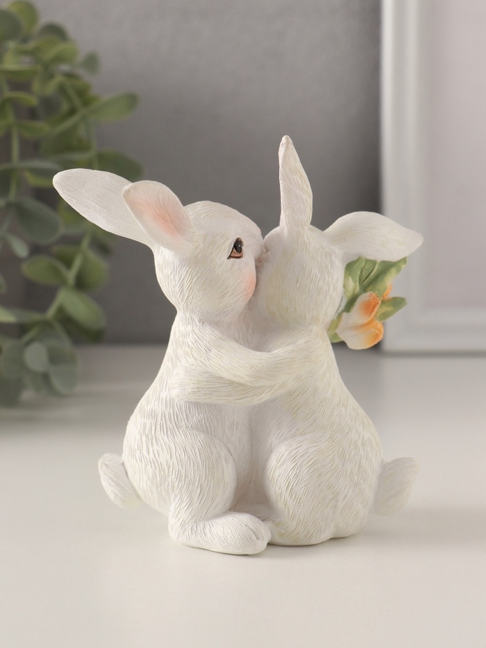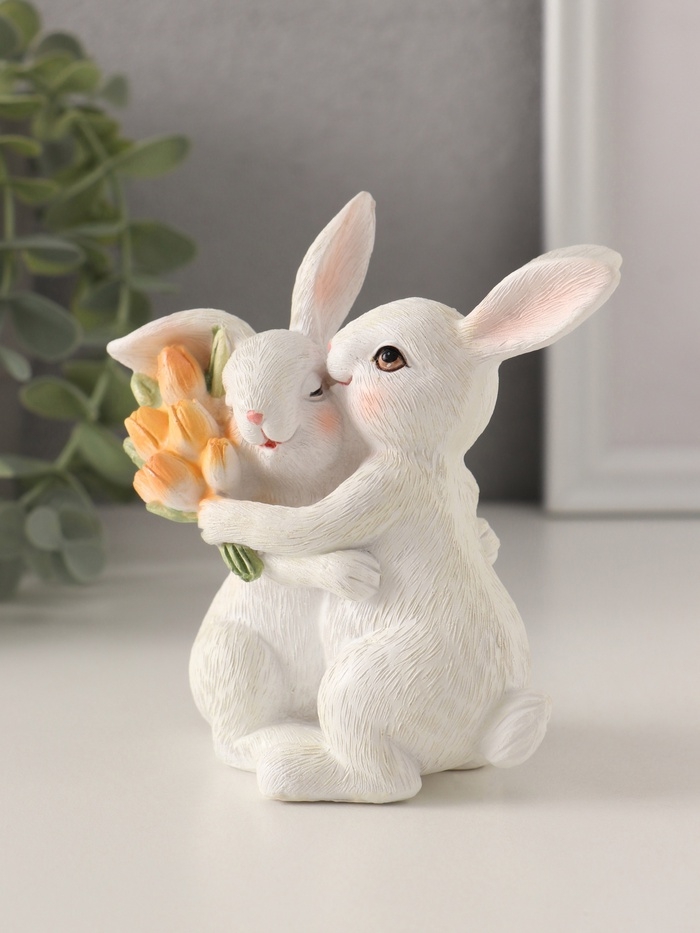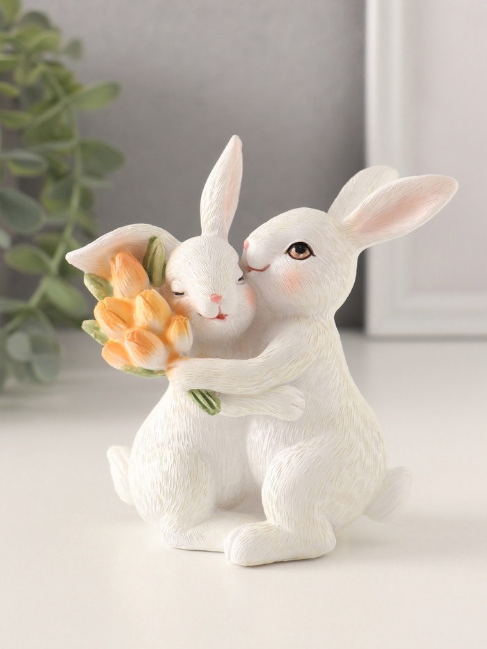 Сувенир полистоун "Парочка зайчиков с тюльпанами. Объятия" 11х5,5х11,5 см