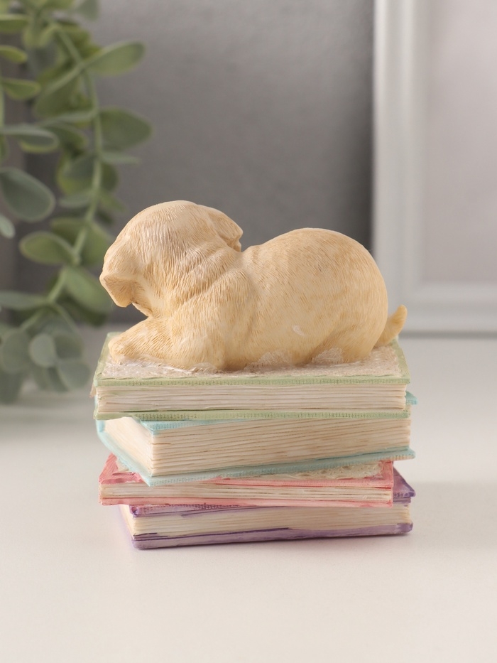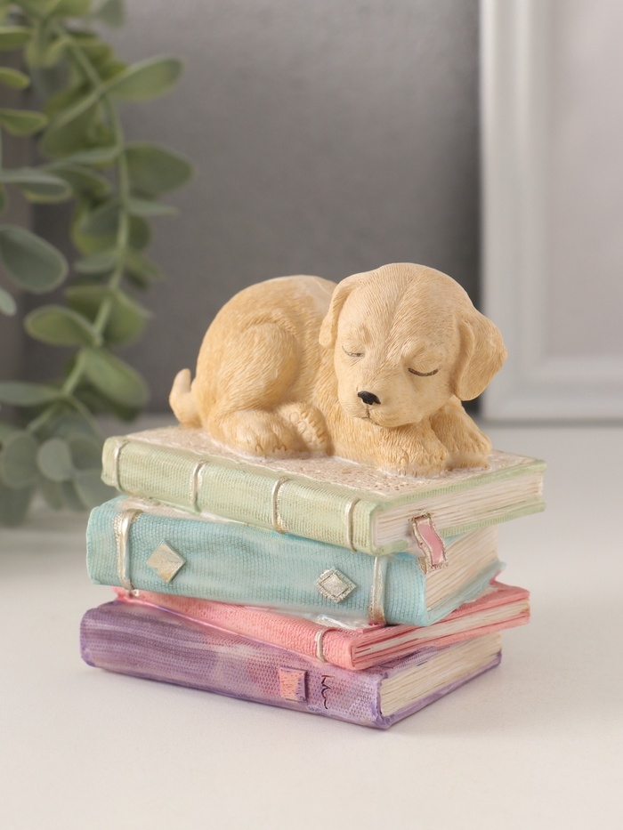 Сувенир полистоун "Щенок спит на книгах" 9х7х8,5 см