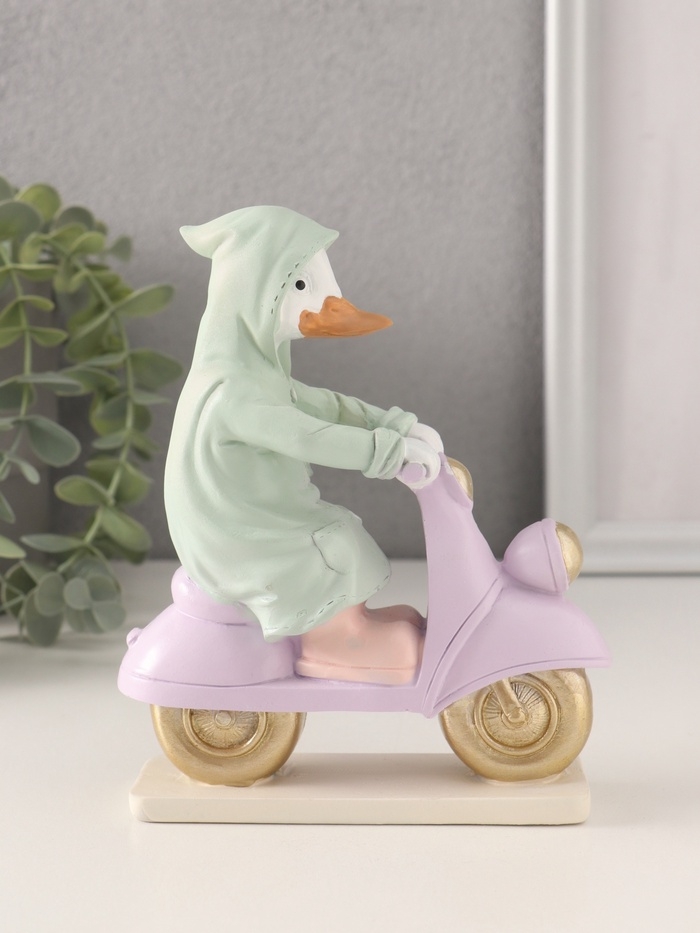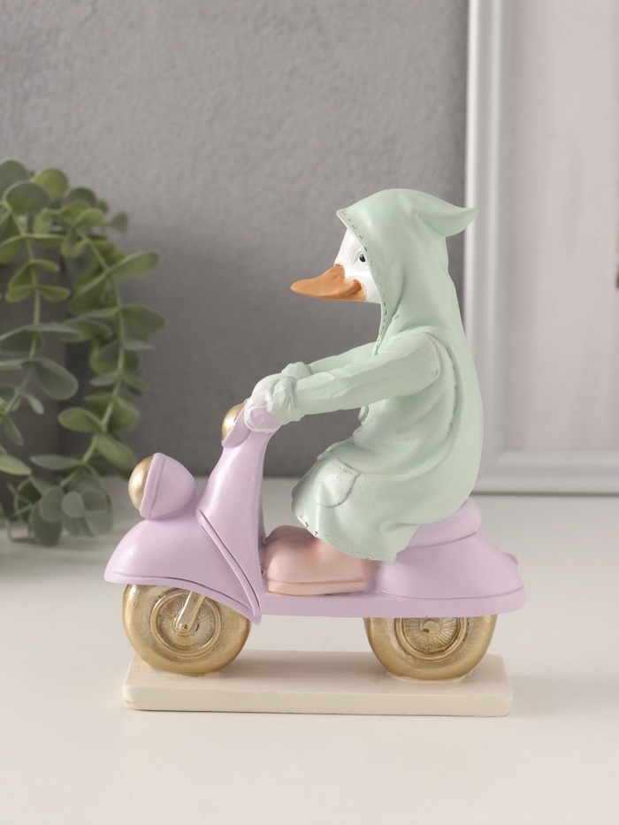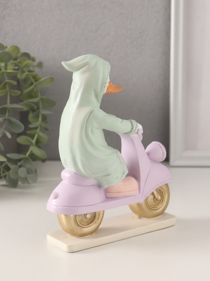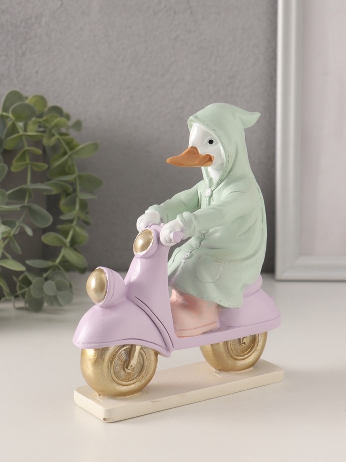 Сувенир полистоун "Утка в зелёном дождевике на мопеде" 13х5,5х16 см