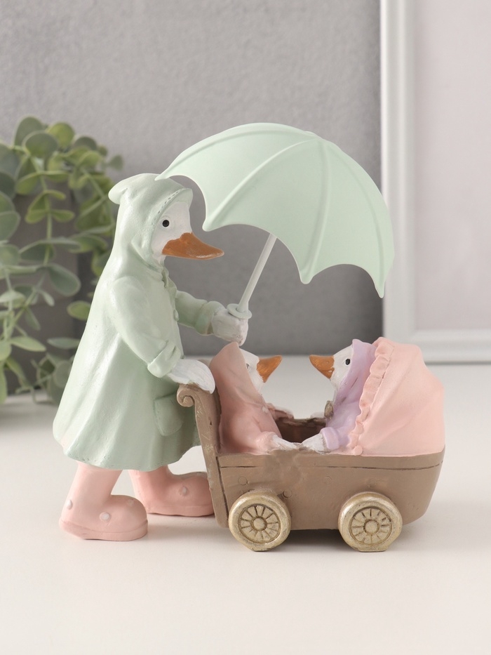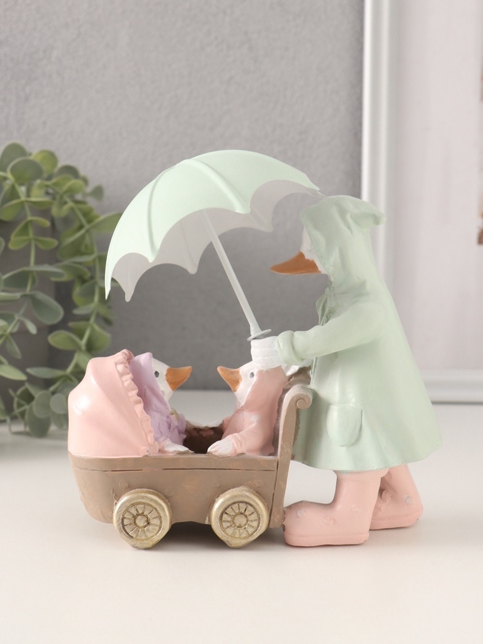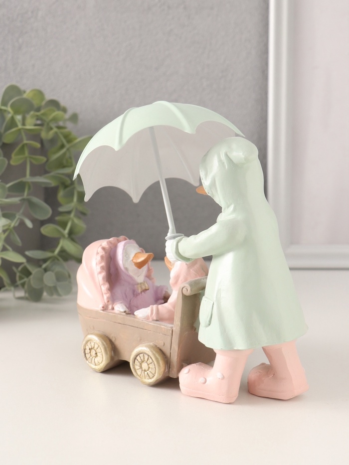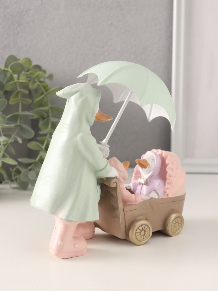 Сувенир полистоун "Утка с утятами в коляске в дождевиках под зонтом" 15,5х6,5х14/16 см