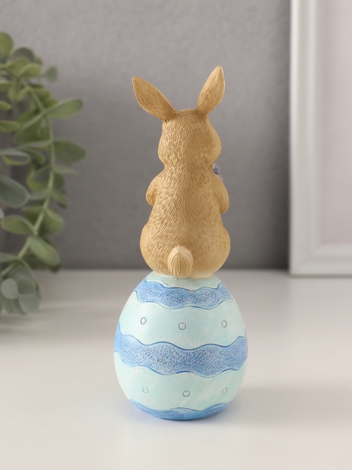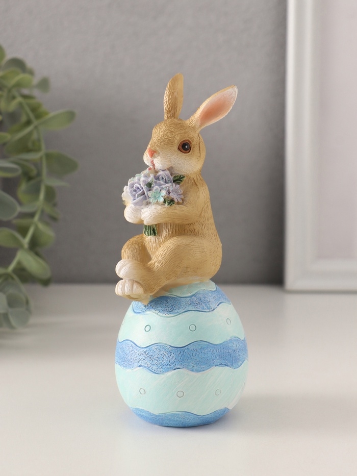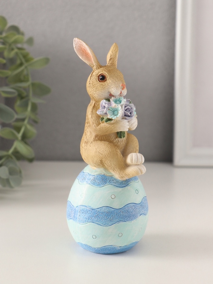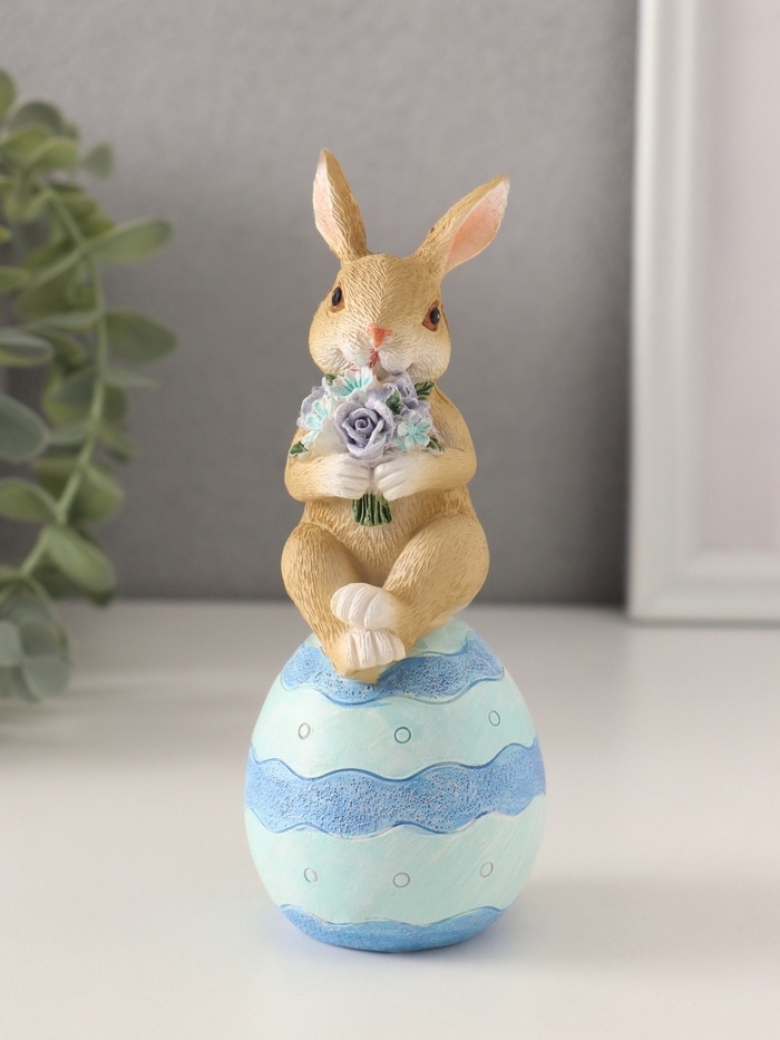 Сувенир полистоун "Зайчик на пасхальном яичке с букетом цветов" 6,5х5,5х14,5 см