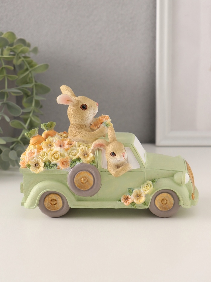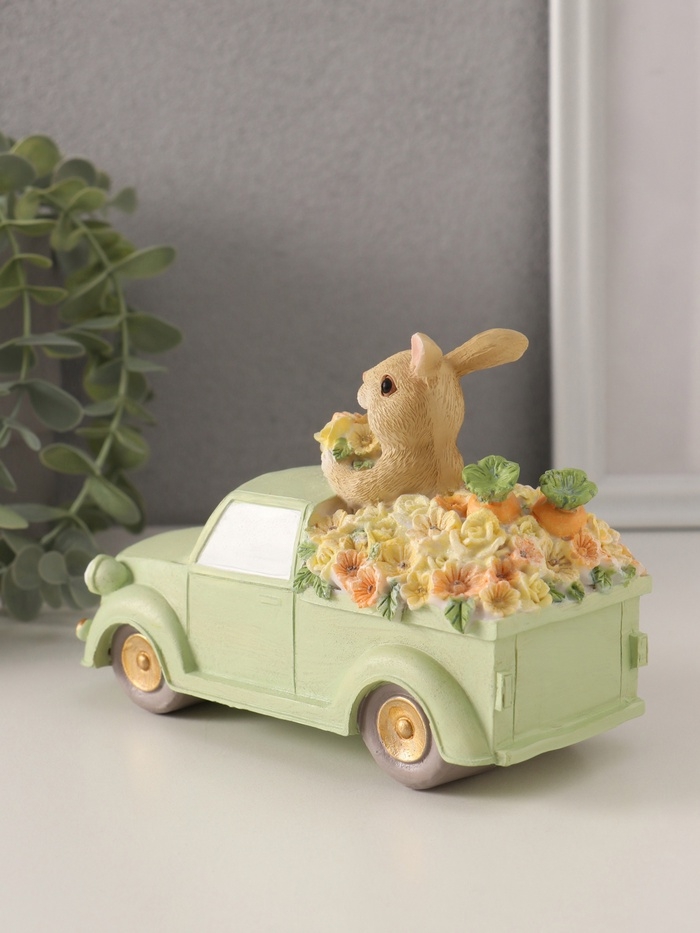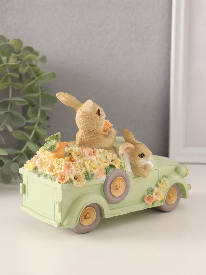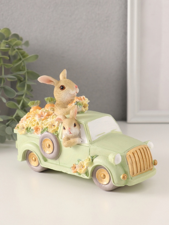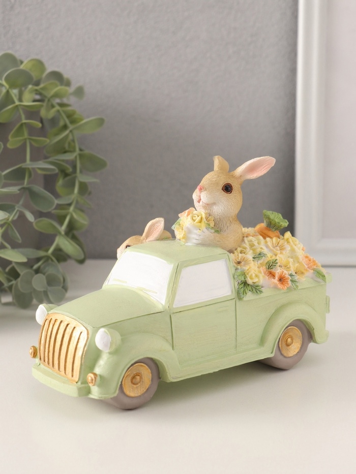 Сувенир полистоун "Зайчики в грузовике с цветами и морковью в кузове" 16х7,5х11,5 см