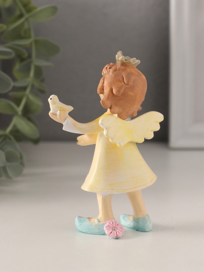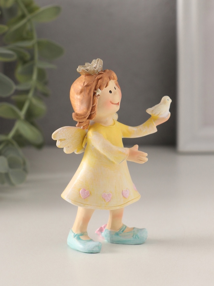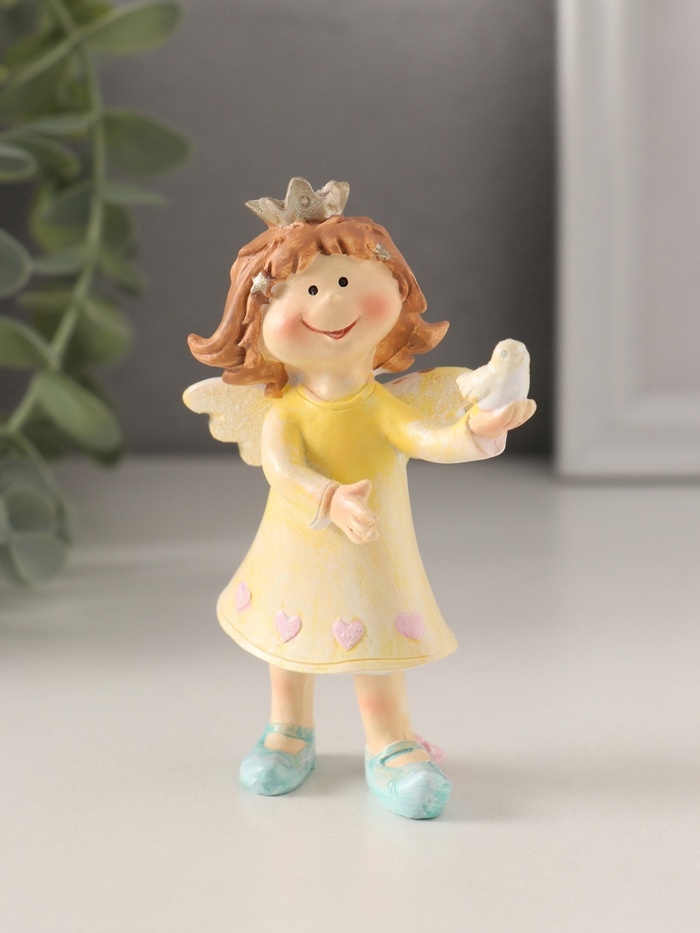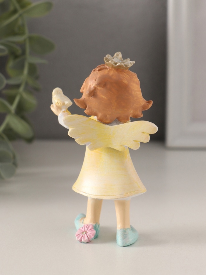 Сувенир полистоун "Принцесса-ангел в жёлтом платье с голубкой в руке" 7х4х10 см