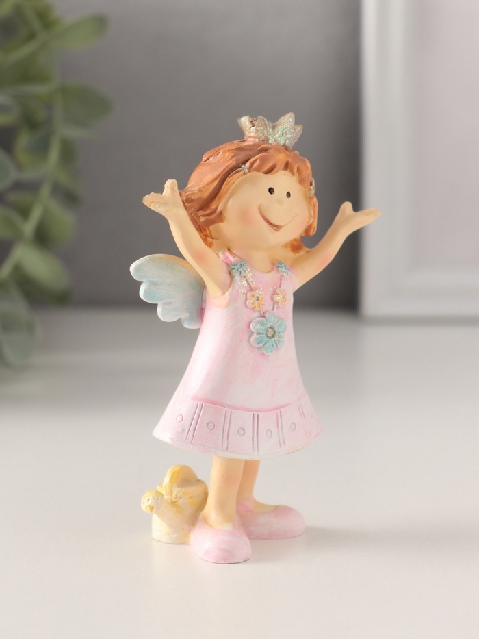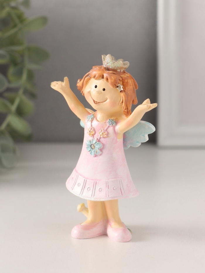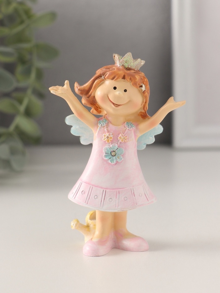 Сувенир полистоун "Принцесса-ангел в розовом платье с леечкой" 7х4х10 см