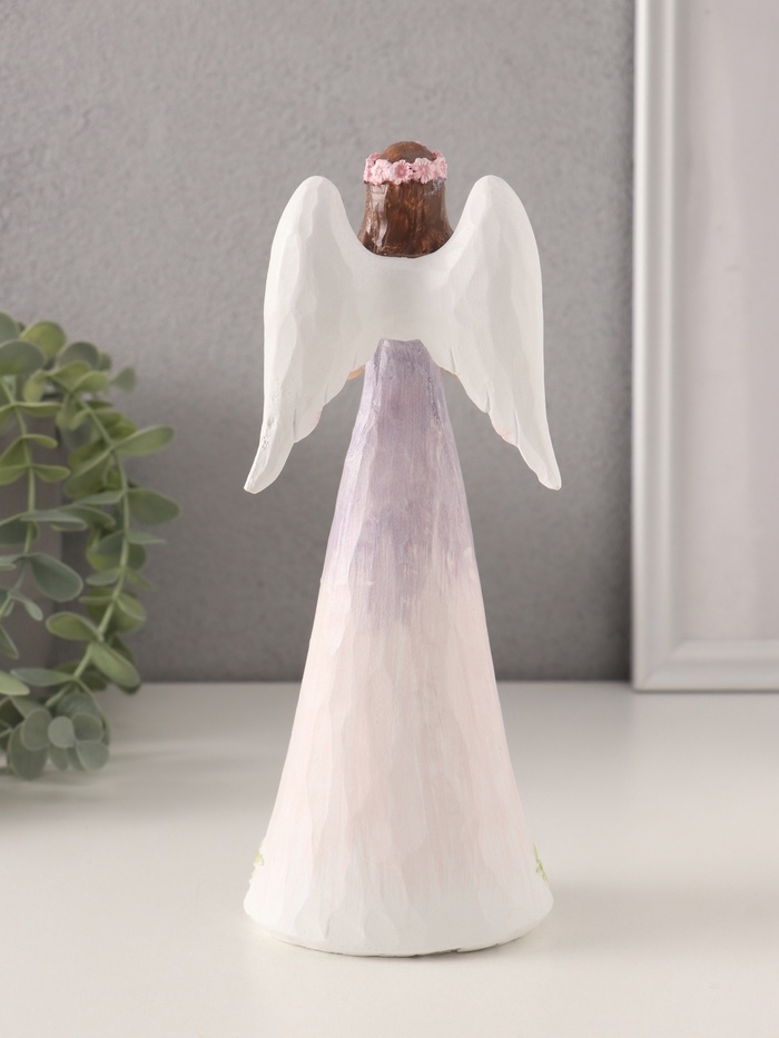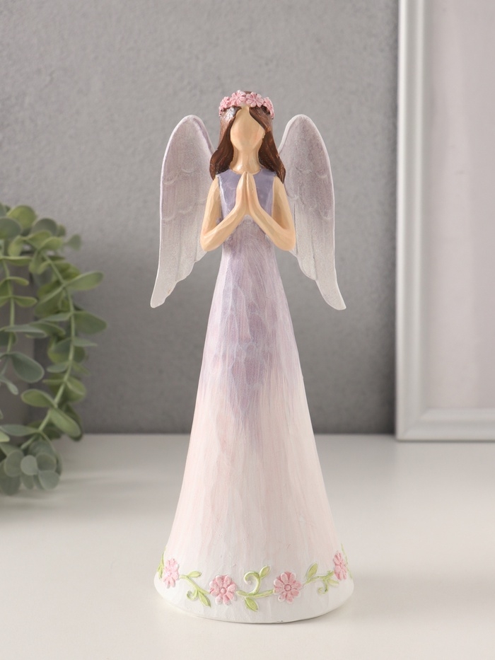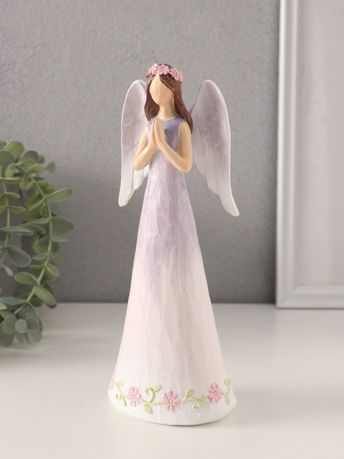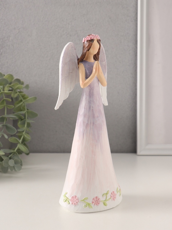 Сувенир полистоун "Девушка-ангел в сиреневом платье с цветами - молитва" 8,5х6х21,5 см