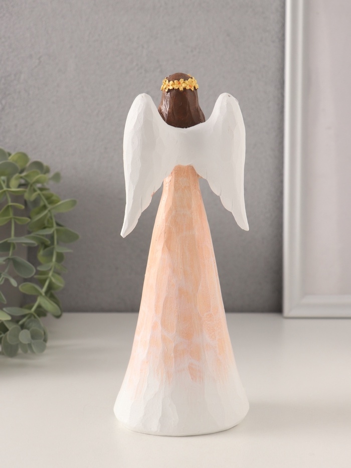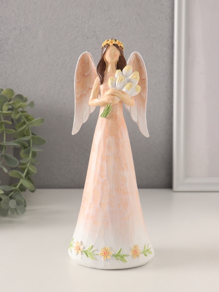 Сувенир полистоун "Девушка-ангел в персиковом платье с букетом тюльпанов" 8,5х6х21,5 см