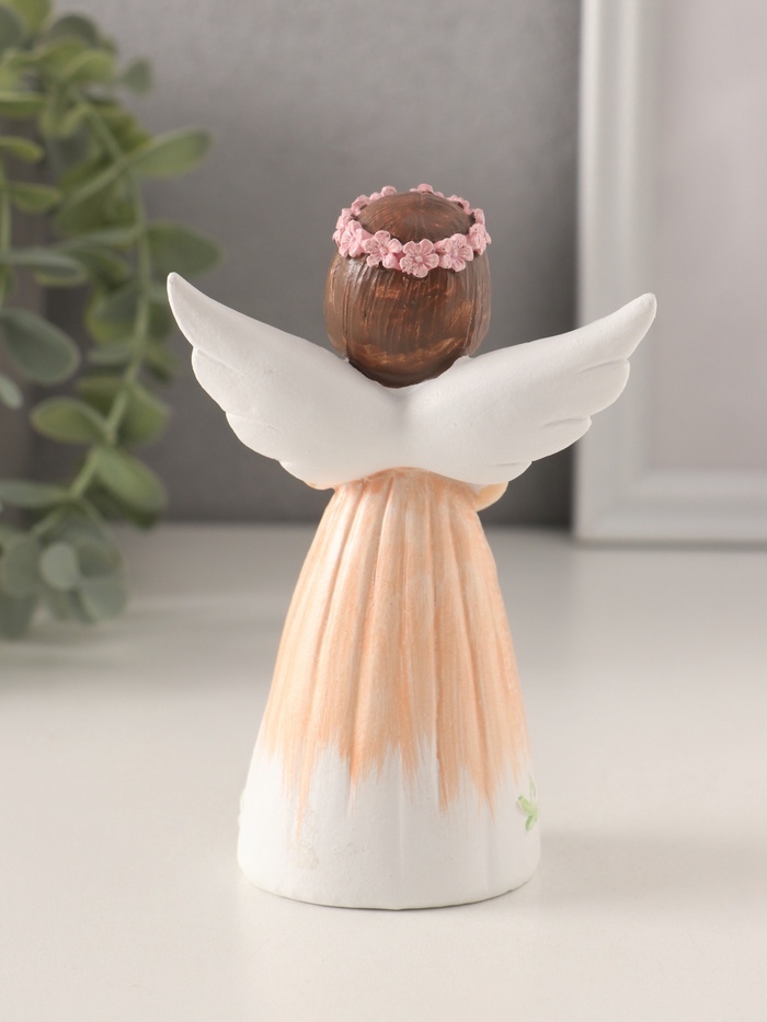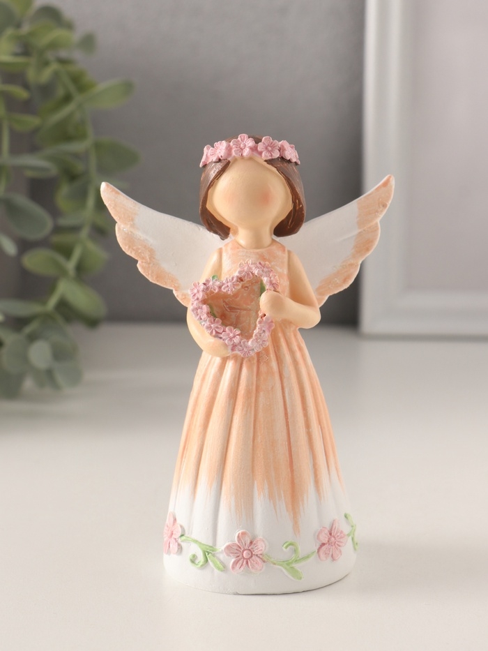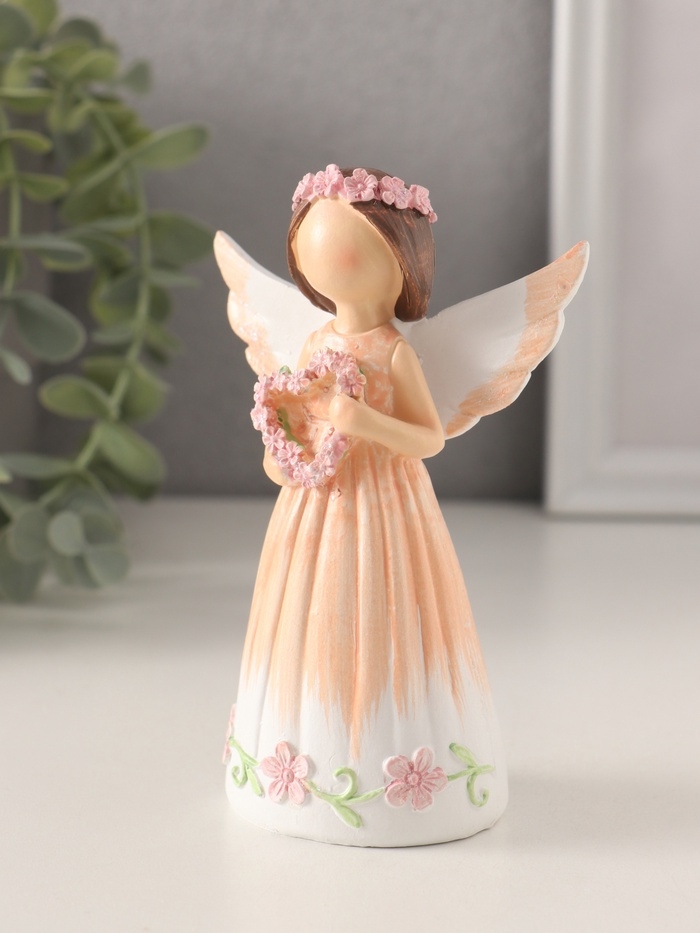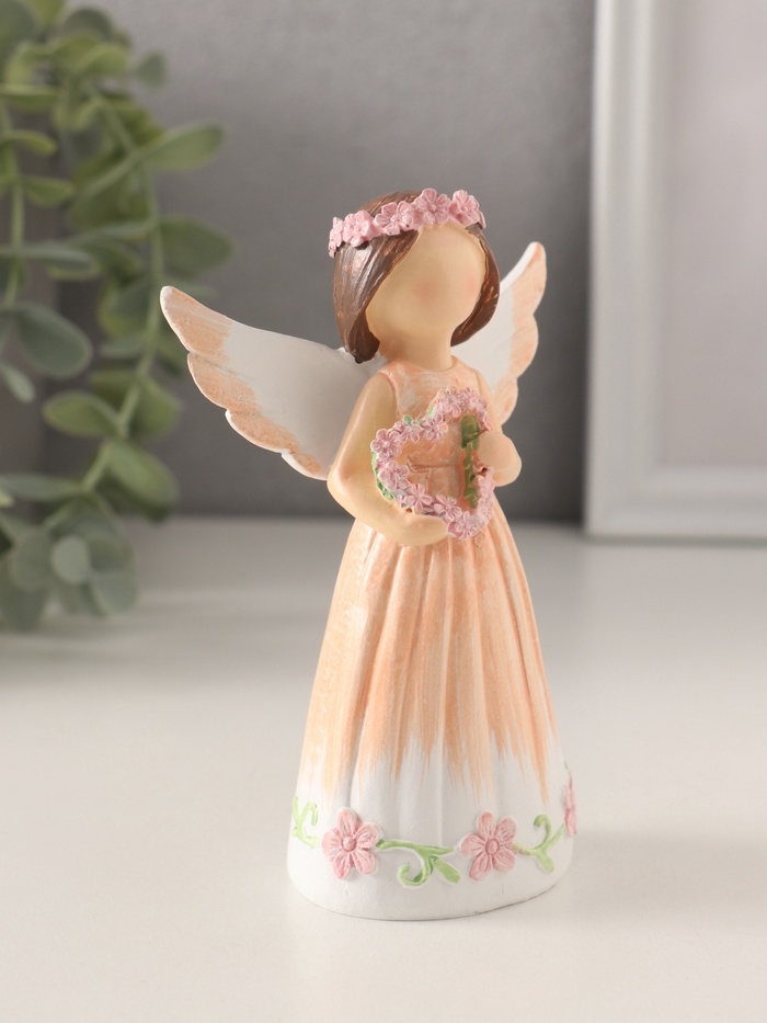 Сувенир полистоун "Девушка-ангел в персиковом платье, с венком-сердце" 8х4,5х12 см