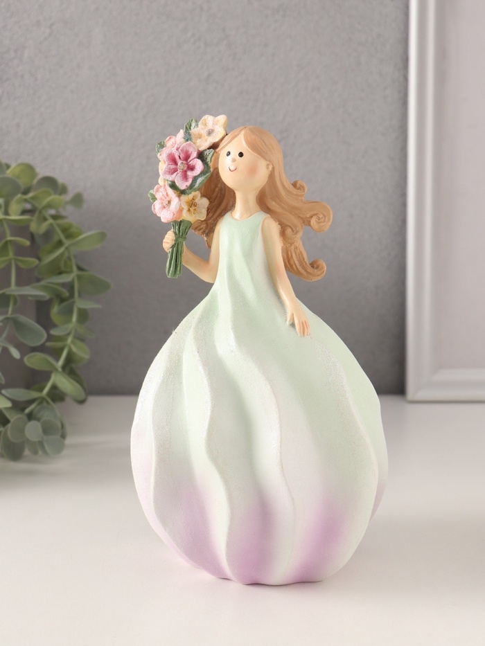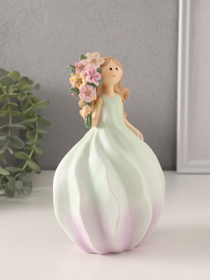 Сувенир полистоун "Девочка-зефирка с букетом" зелёно-фиолетовый 11,5х10,5х18,5 см