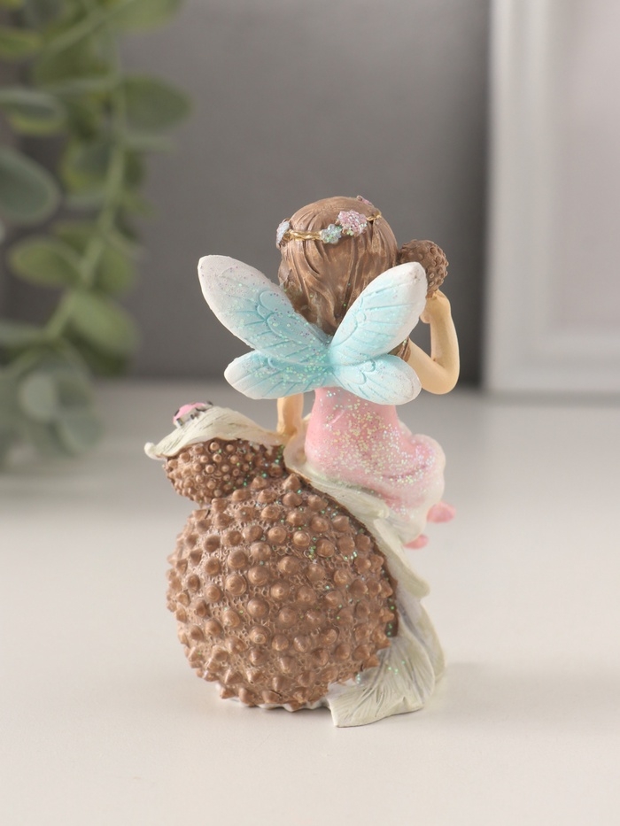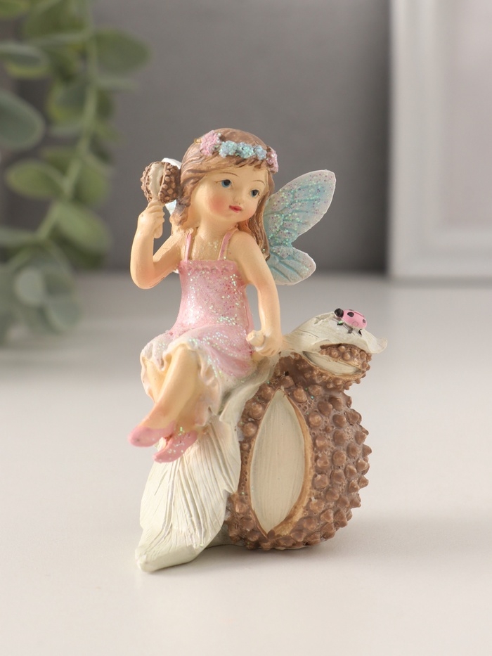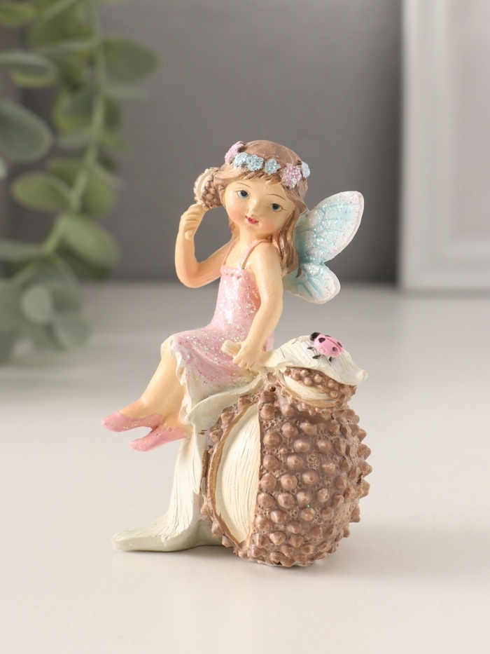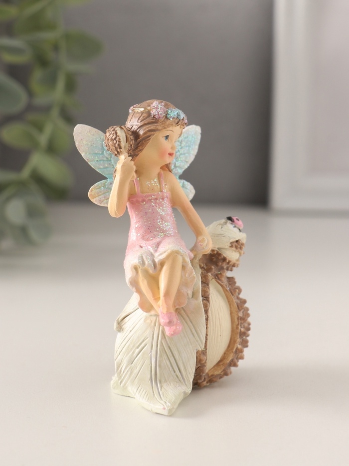 Сувенир полистоун "Девочка-фея в розовом платье на фрукте с божьей коровкой" 6,5х5х9 см
