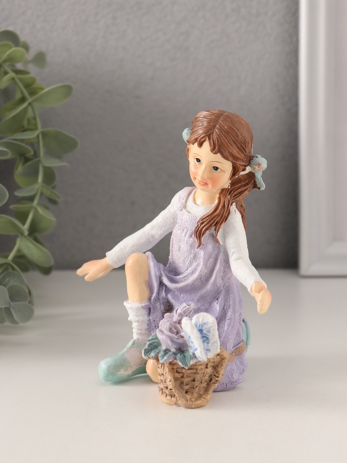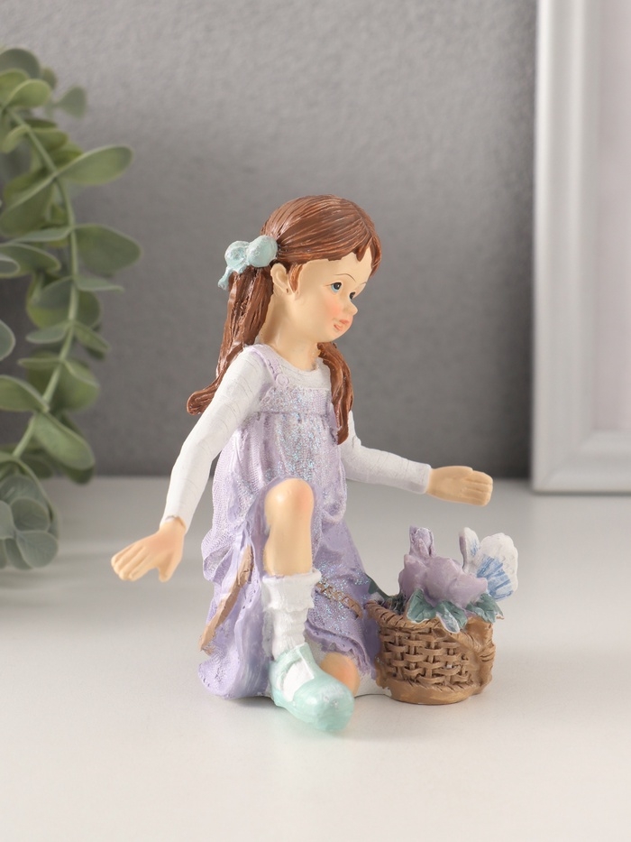 Сувенир полистоун "Девочка в сиреневом сарафане с корзинкой цветов" 11х6,5х12 см