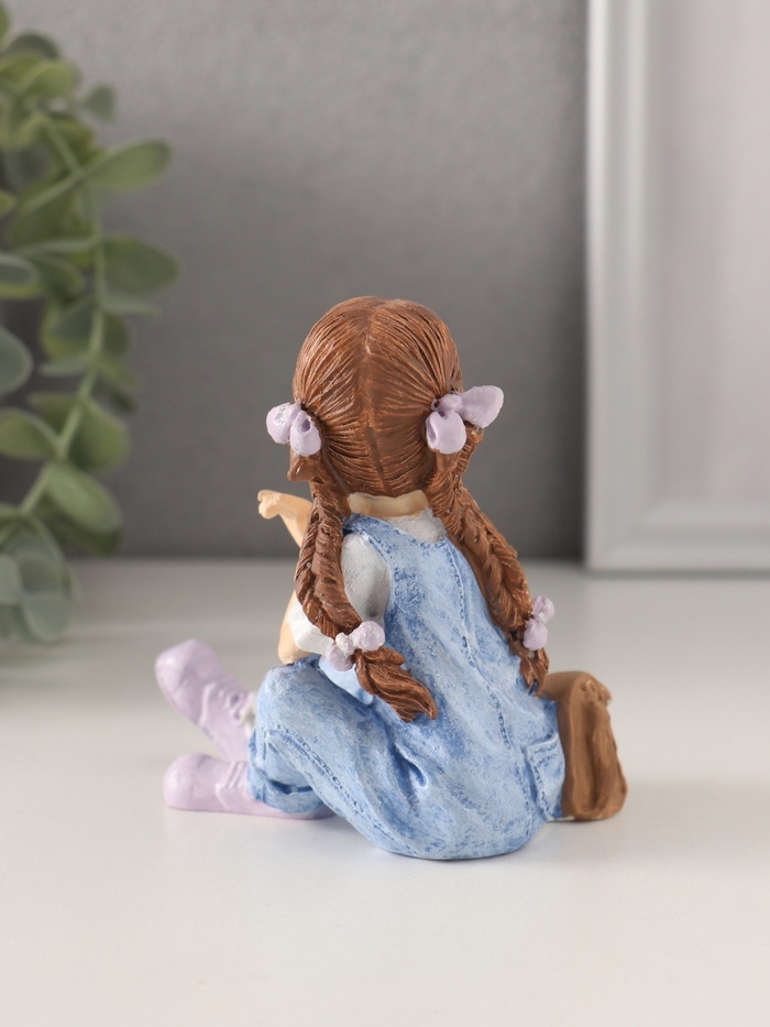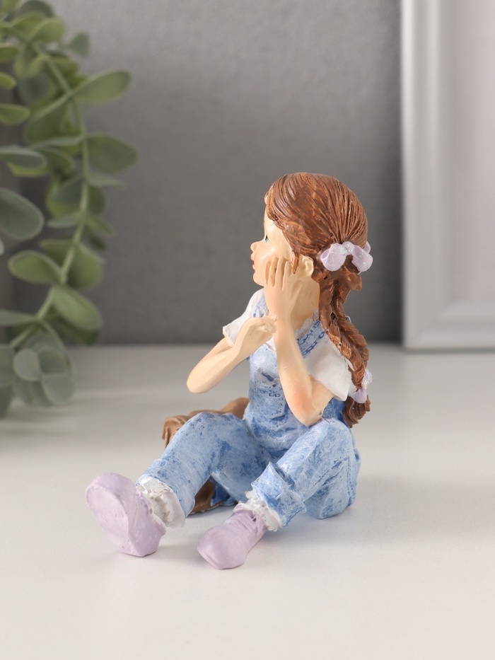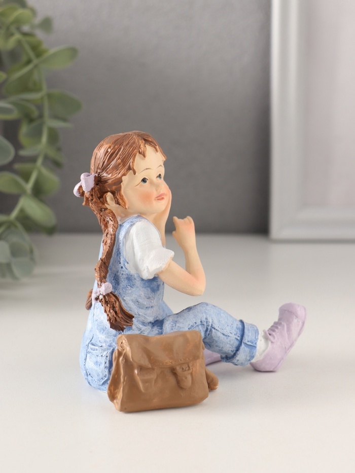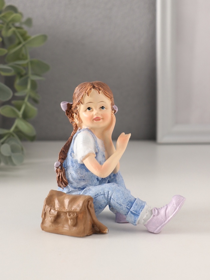 Сувенир полистоун "Малышка в джинсовом комбинезоне с сумкой-портфелем" 11х6,5х12 см