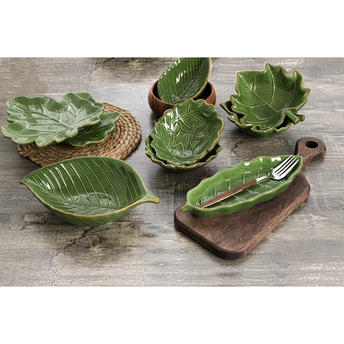Салатник Доляна «Лист», 450 мл, 24,7×15,2 см, цвет зелёный