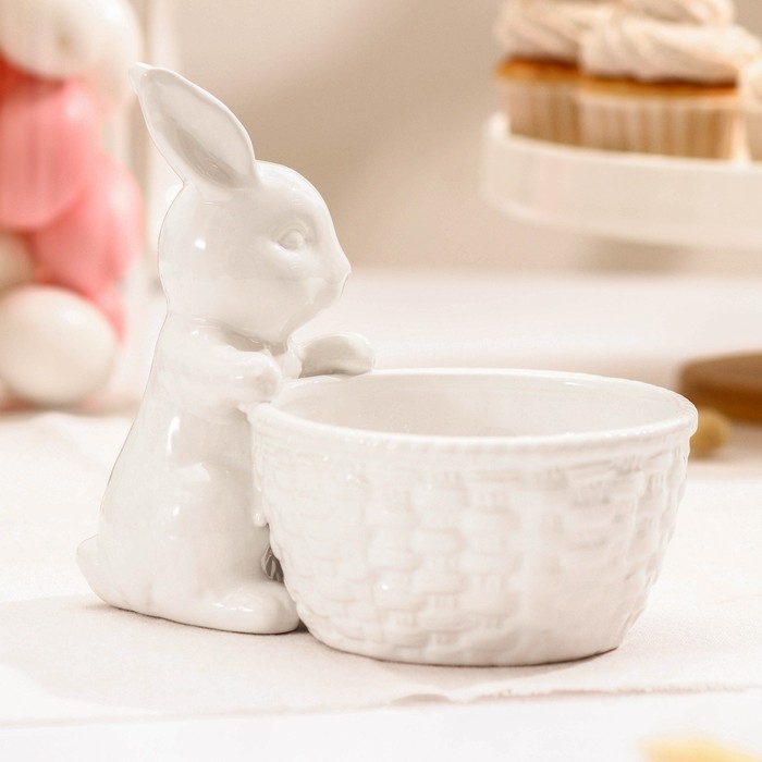 Конфетница Доляна «Зайка», 500 мл, 18,5×13,3×16,5 см, цвет белый
