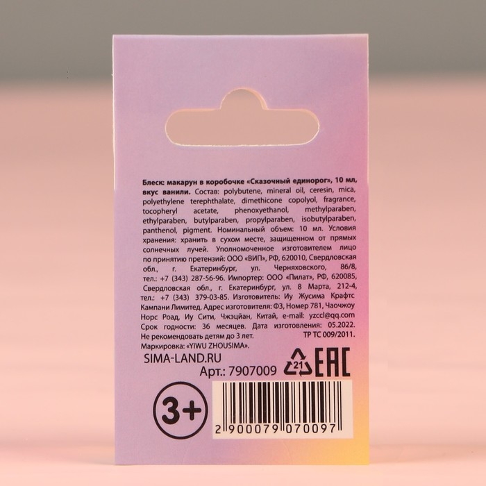 Блеск макарун в коробочке «Сказочный Единорог», 10 г, аромат ванили