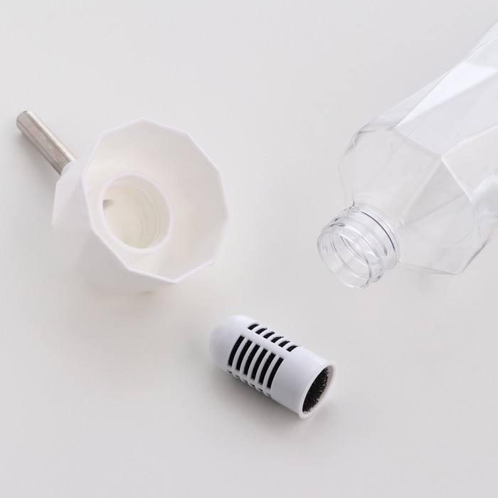 Поилка с дозатором предотвращает вытекание воды, поэтому в клетке всегда будет сухо, так же внутри имеется фильтр для отчистки воды.