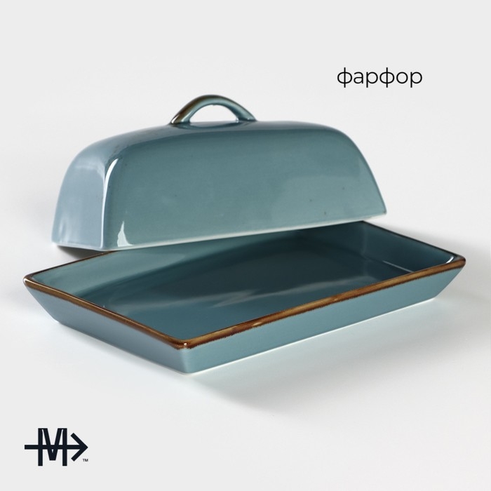 Маслёнка фарфоровая Magistro «Церера», 18×12 см, цвет голубой