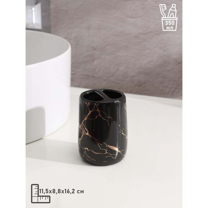 Набор для ванной «Молния», 4 предмета (мыльница, дозатор для мыла 390 мл, 2 стакана), цвет чёрный