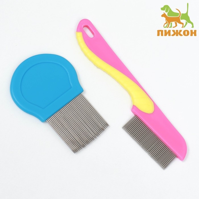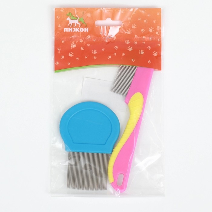Набор расчесок для животных, с длинными и короткими зубьями, розовая/синяя