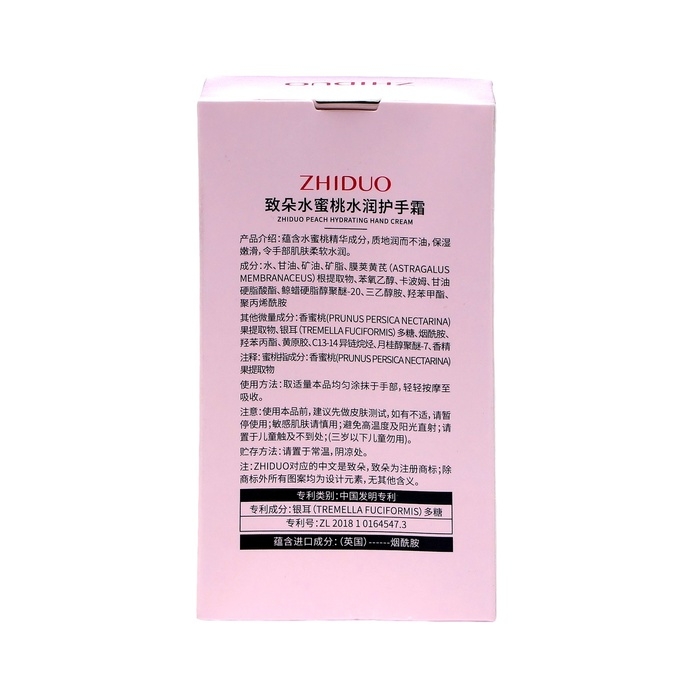 Состав: вода, глицерин, минеральное масло, минеральные липиды, экстракт корня астрагала перепончатого, феноксиэтанол, углерод, глицерилстеарат, полиол-20 стеарилового спирта, триэтанол, легкий метиловый жир, экстракт персика, экстракт фруктов, полисахарид, тремелла фукусовидная, никотиновая кислота, легкий пропиловый спирт, ксантановая камедь, С13-14 изопарафин, лауриловый фермент полиол-7, ароматизатор.