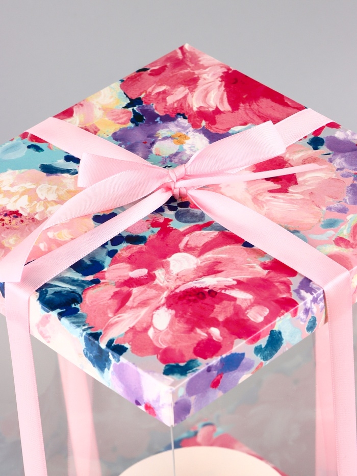 Коробка PVC, для цветов с лентой, 28 х 18 х 18 см, розовый