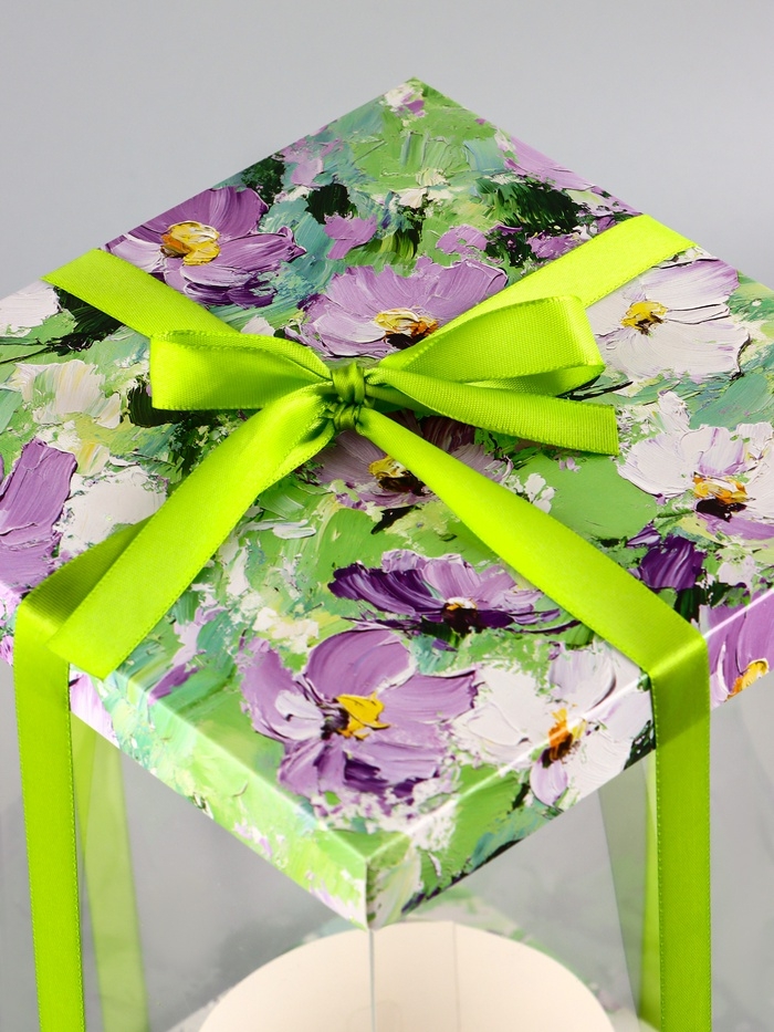 Коробка PVC, для цветов с лентой, 28 х 18 х 18 см, зеленый