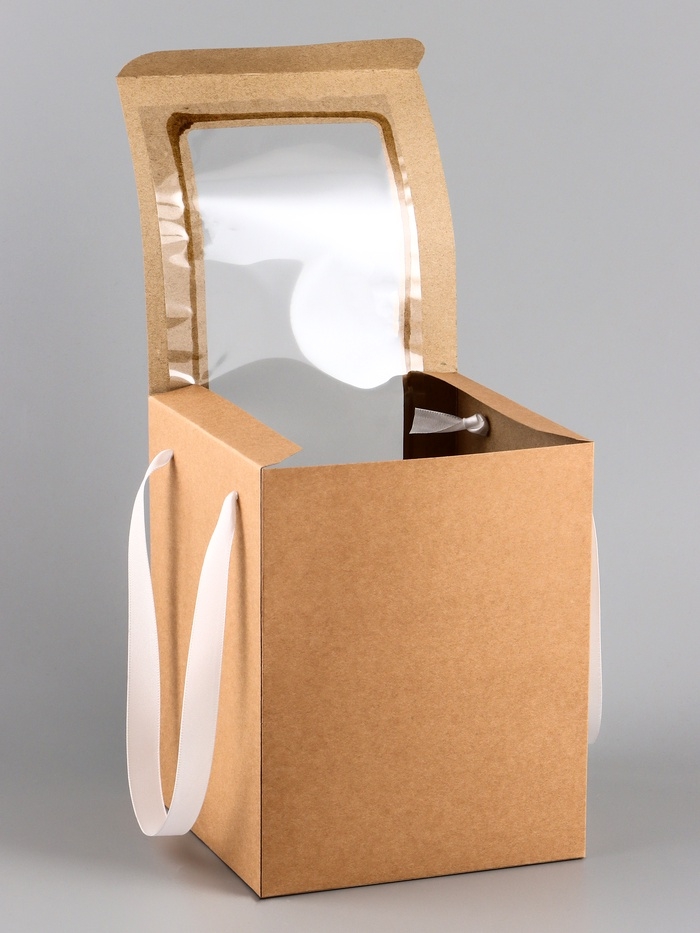 Коробка для цветов, 16 х 16 х 20 см, крафт