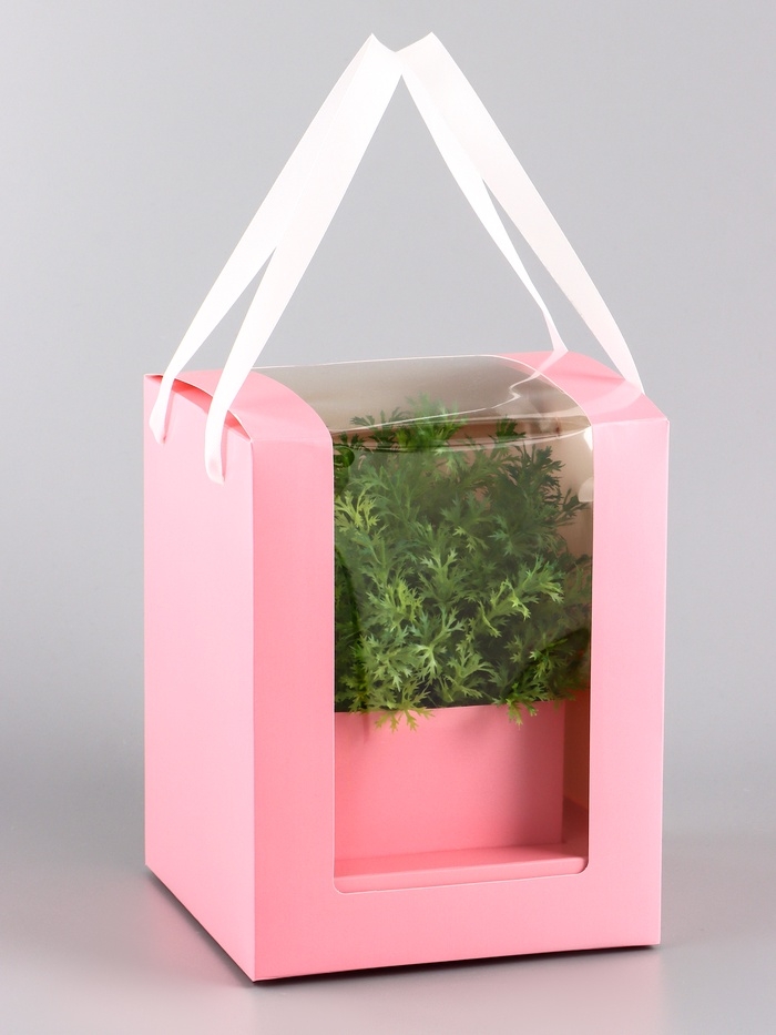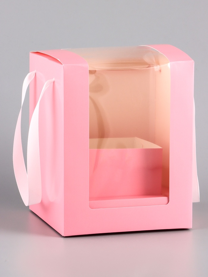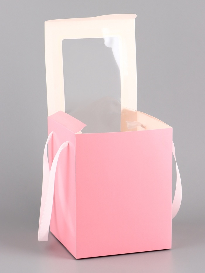 Коробка для цветов, 16 х 16 х 20 см, розовая