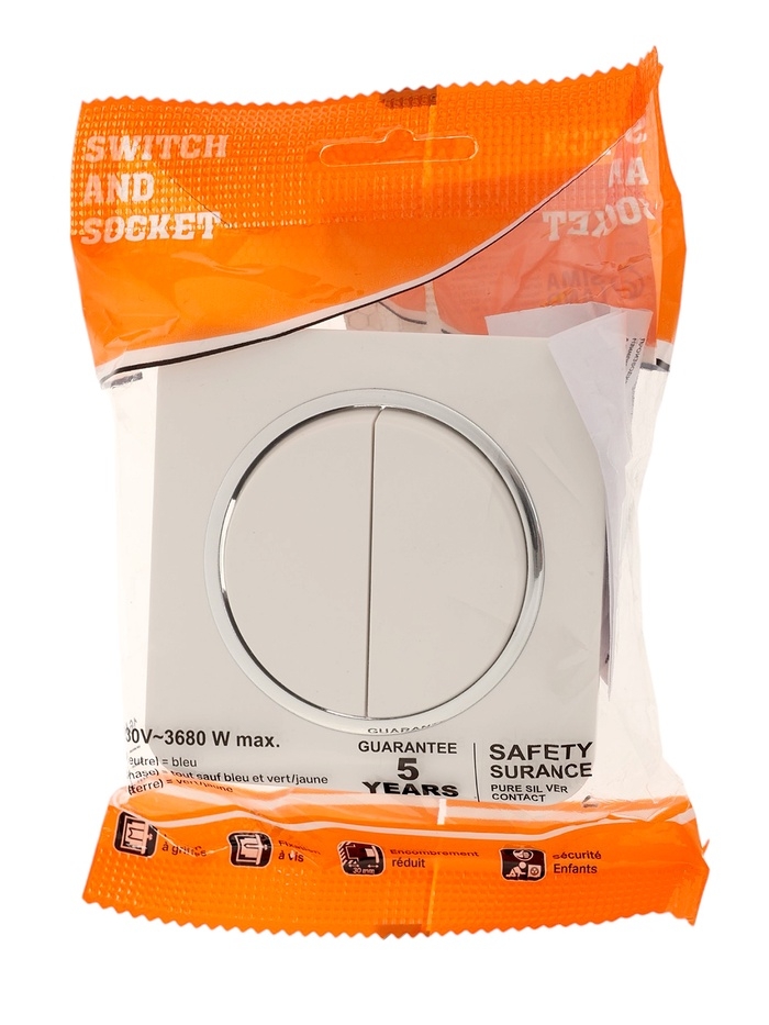 Выключатель, серия "Circular", 10 А, 2 кл., скрытый, белый, серебристая рамка