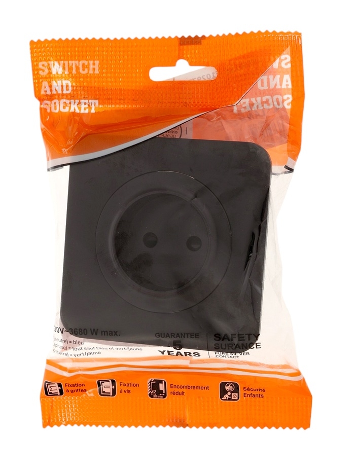 Розетка одноместная, серия "Circular", 10 А, скрытая, без з/к, черная