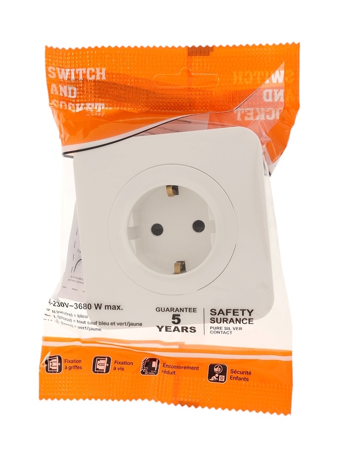 Розетка одноместная, серия "Circular", 16 А, скрытая, с з/к, белая