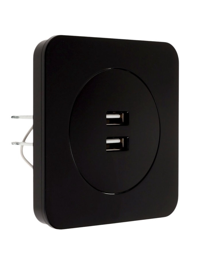 Розетка с 2 USB-A разъёмами, 2.1А, 5В, серия "Circular", 10 А, скрытая, черная