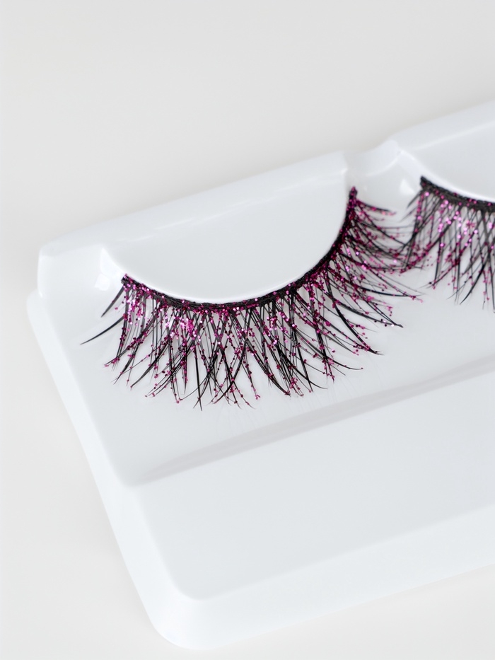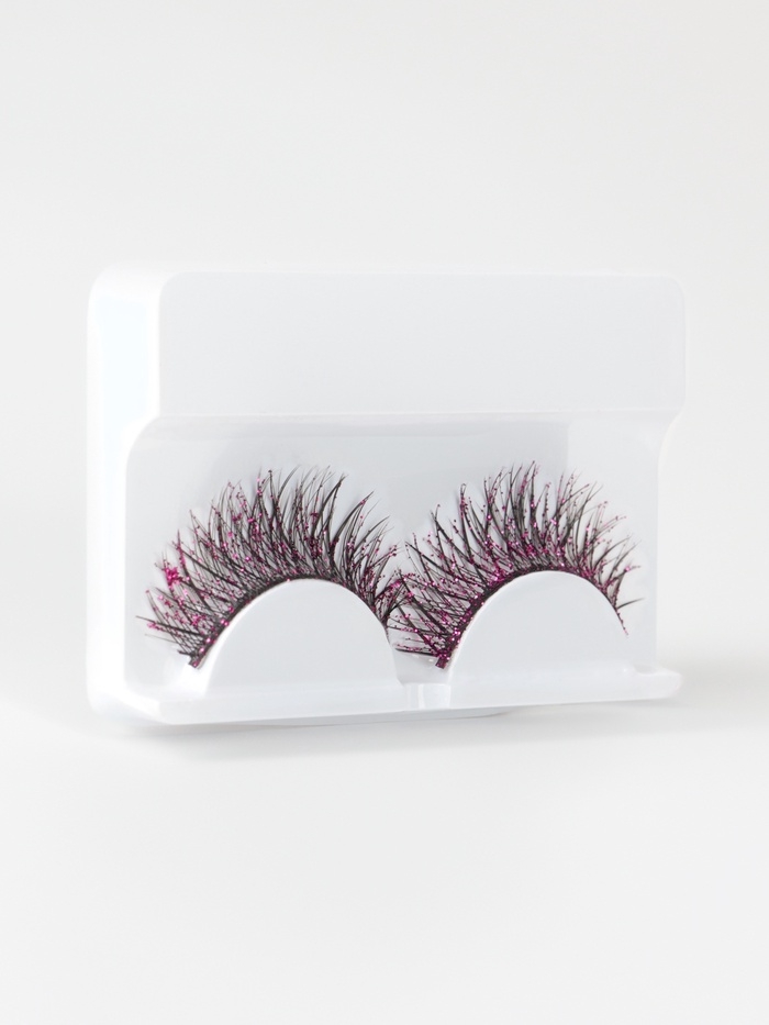 Ресницы накладные блестящие розовые пластик к/короб QF