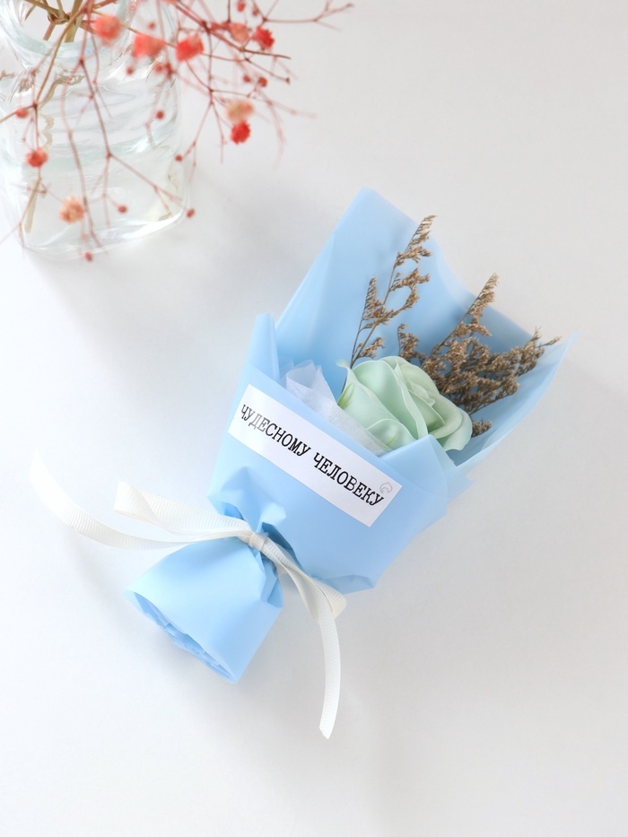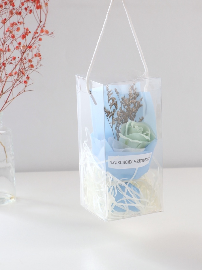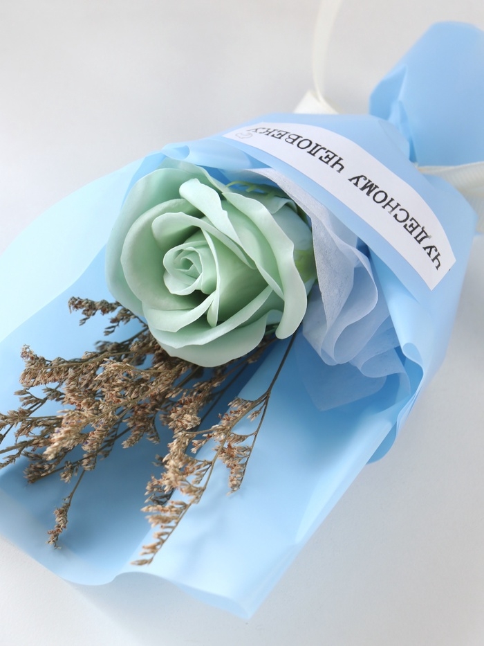 Букет из мыльных лепестков "Роза подарочная в коробке" голубой 8,6х8,6х18,5 см