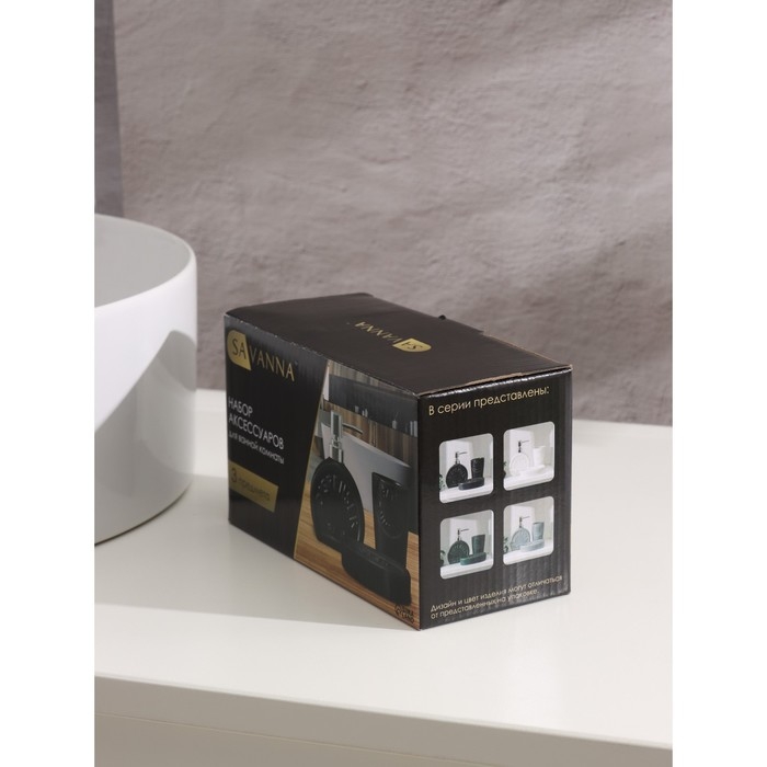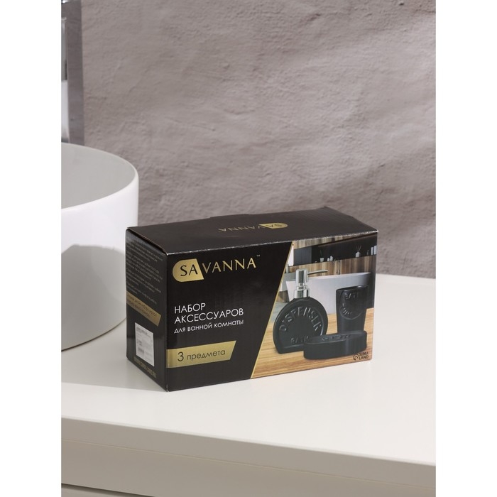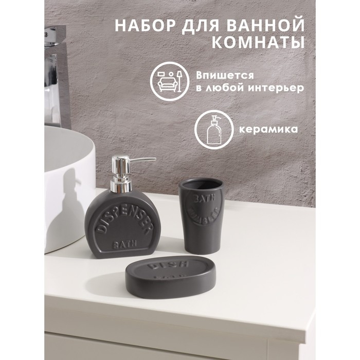 Набор аксессуаров для ванной комнаты SAVANNA «Легенда», 3 предмета (дозатор 370 мл, мыльница, стакан), цвет серый