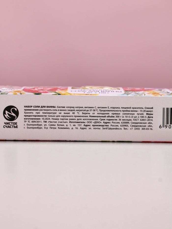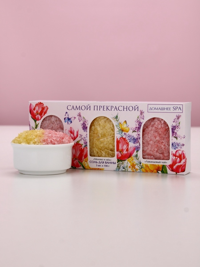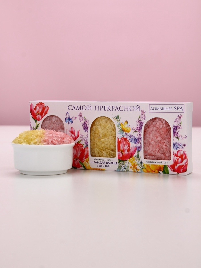 Набор "Самой прекрасной", 3 соли для ванны, малина, молоко и мёд, лаванда