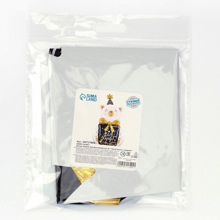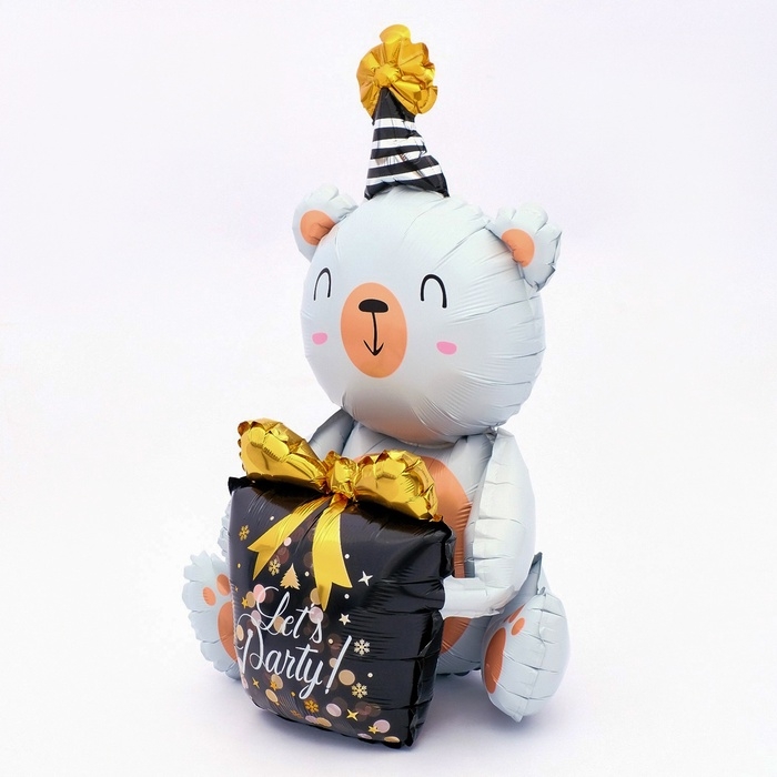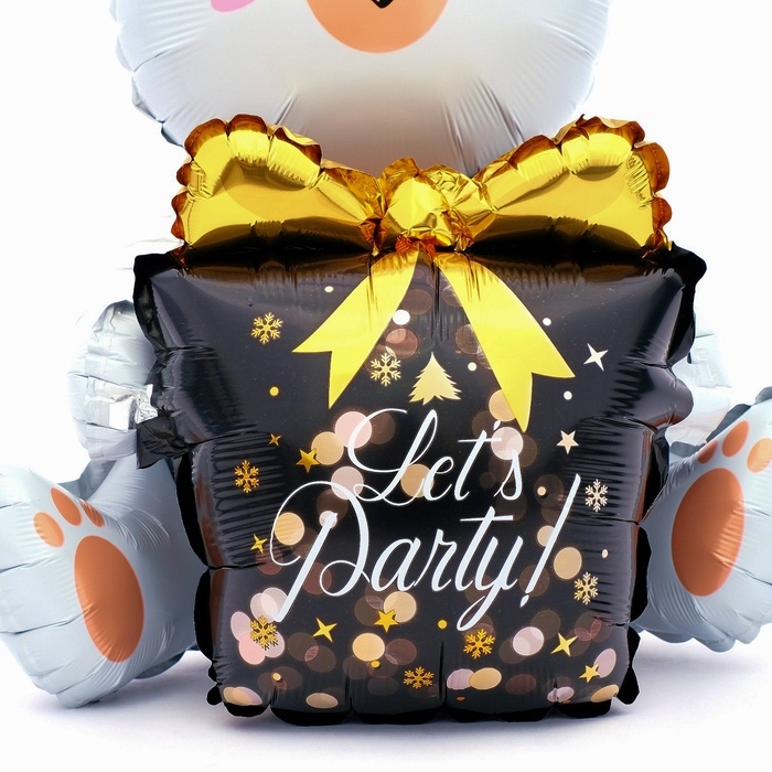 Шар фольгированный 36" "Белый мишка с подарком"