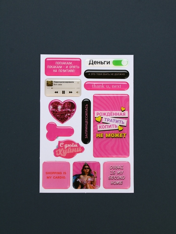 Объемные 3D стикеры на телефон «Рожденная тратить», 18+, 14 шт