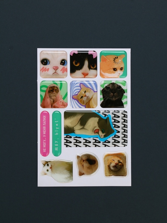 Объемные 3D стикеры на телефон «Коты», 12 шт