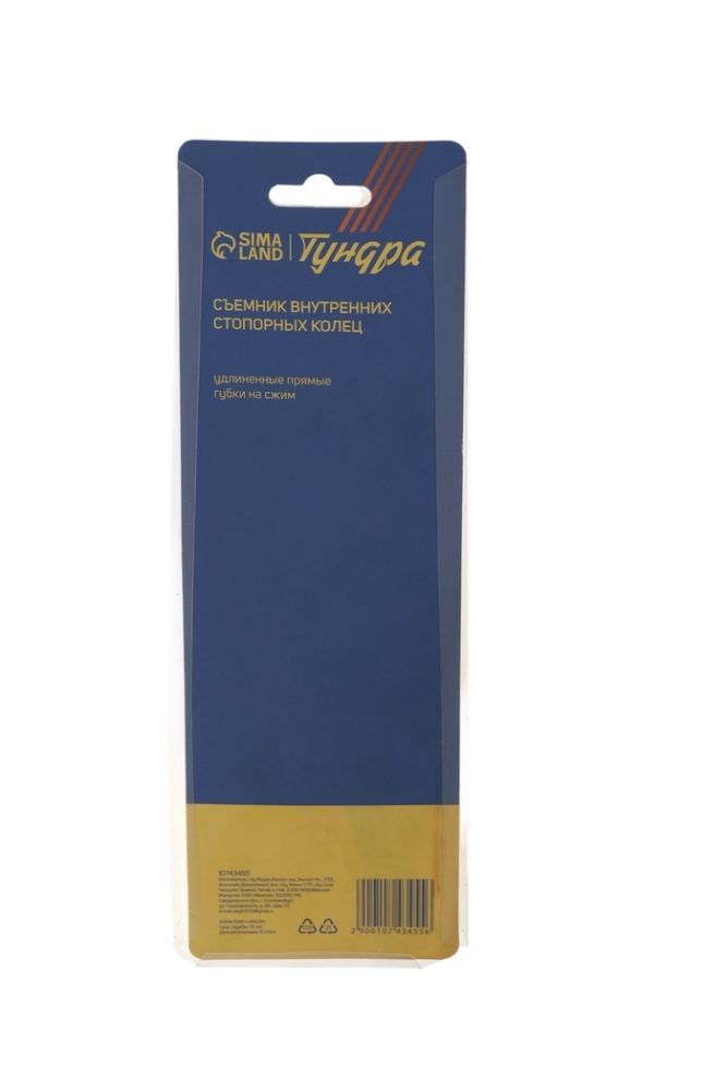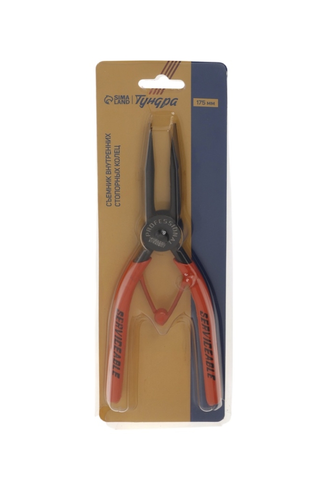 Съемник внутренних стопорных колец ТУНДРА, удлиненные прямые губки на сжим, 190 мм