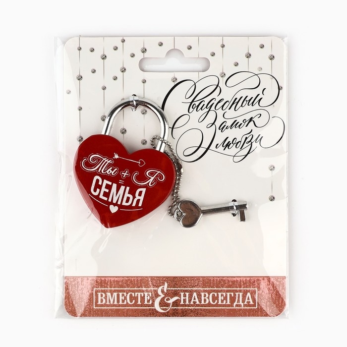Замок свадебный с ключом «Ты и Я = Семья».