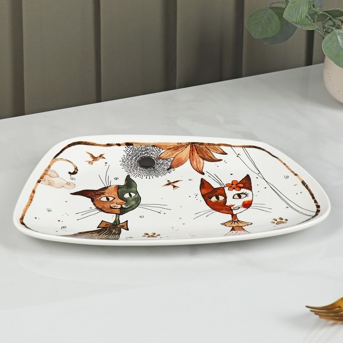 Блюдо фарфоровое сервировочное Доляна «Коты-аристократы», 30×18,5 см, цвет белый